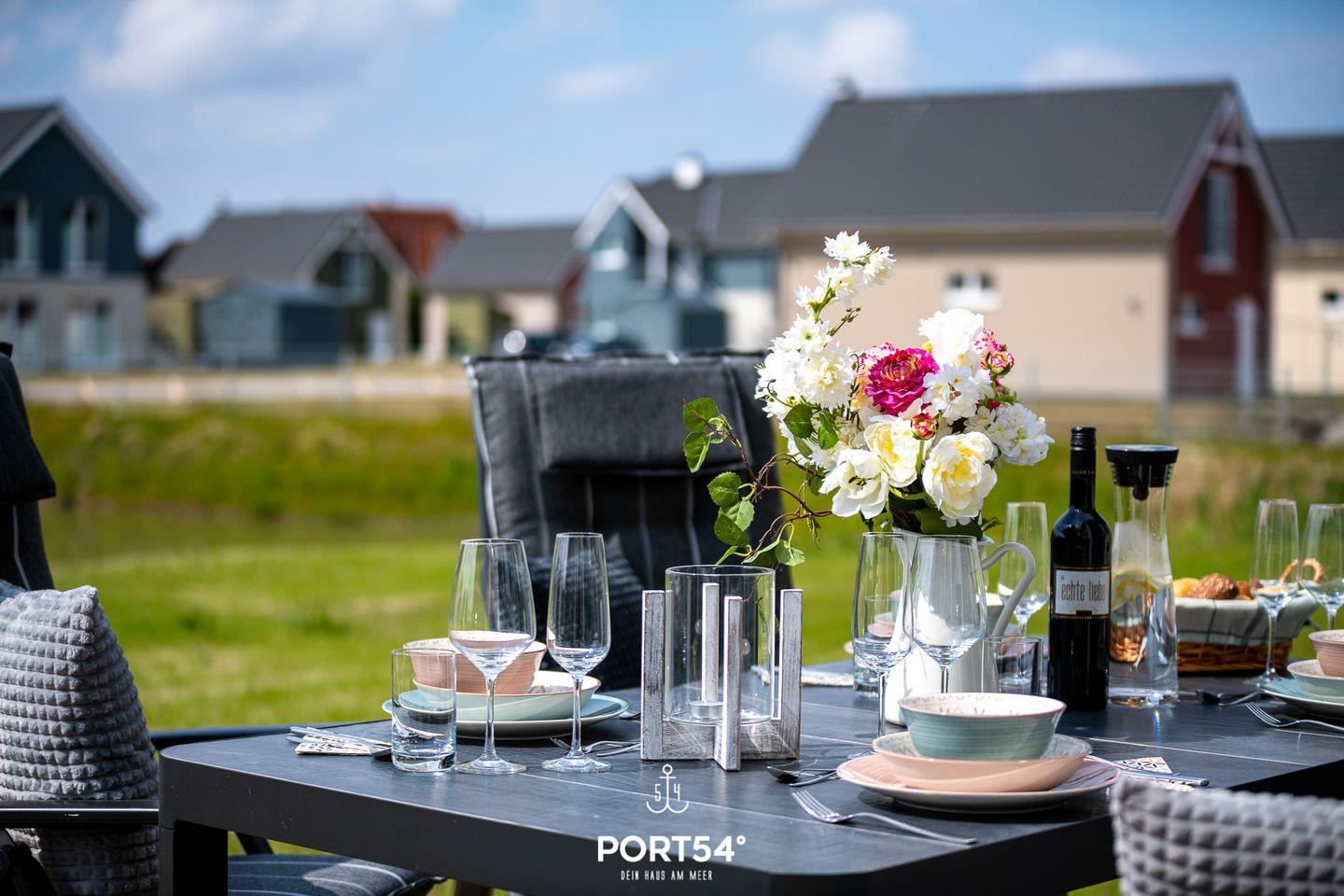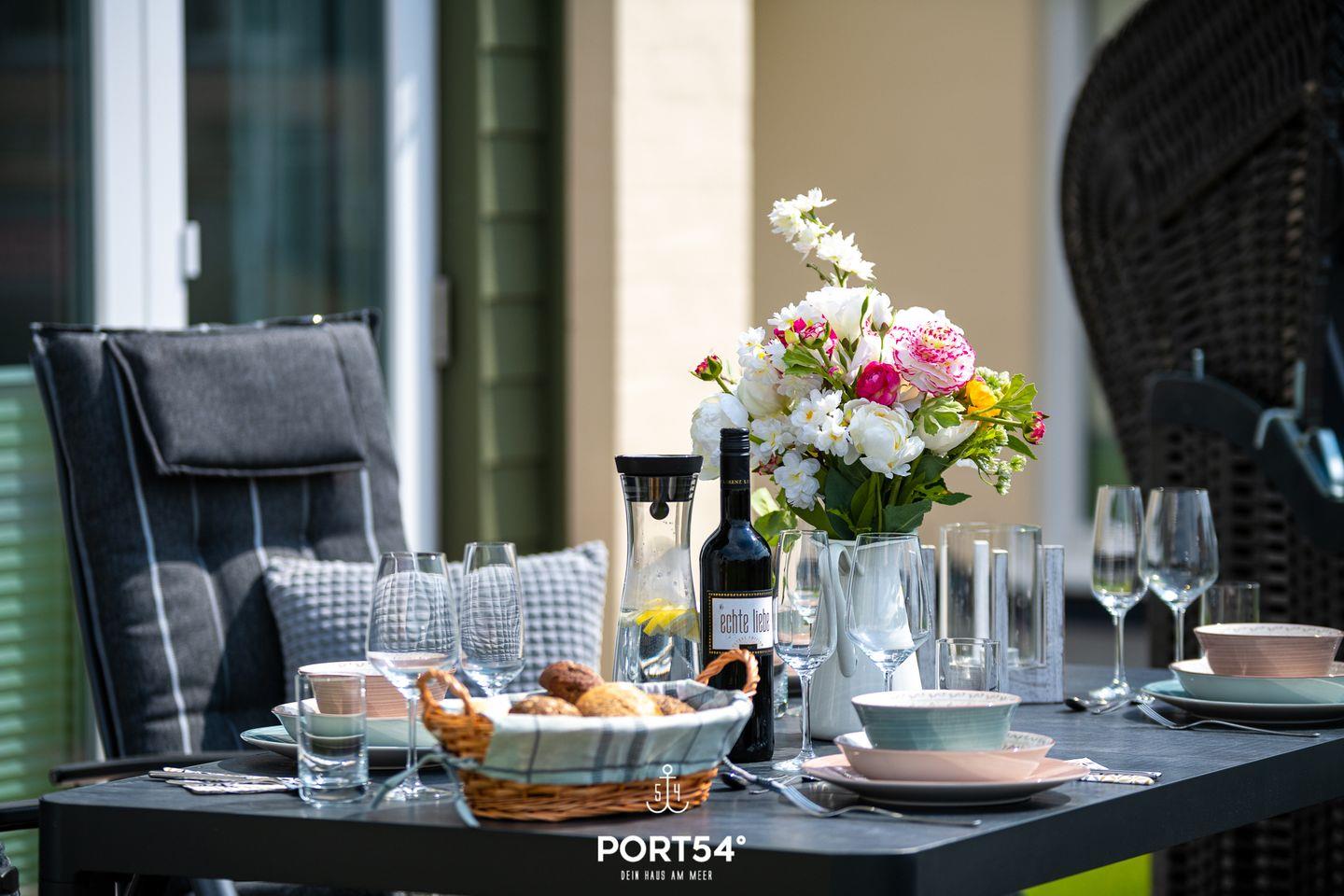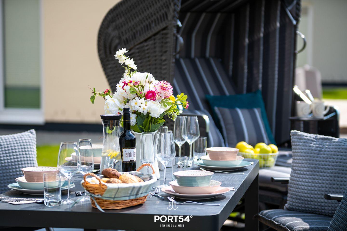 Durch die großen Terrassentüren gelangst du direkt auf die sonnige Terrasse. Ob beim Frühstück an der frischen Luft oder bei einem geselligen Grillabend mit dem Elektro-Grill – hier lässt sich die Nordseeluft in vollen Zügen genießen.