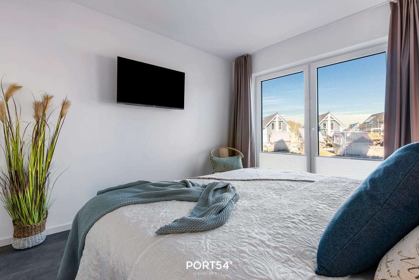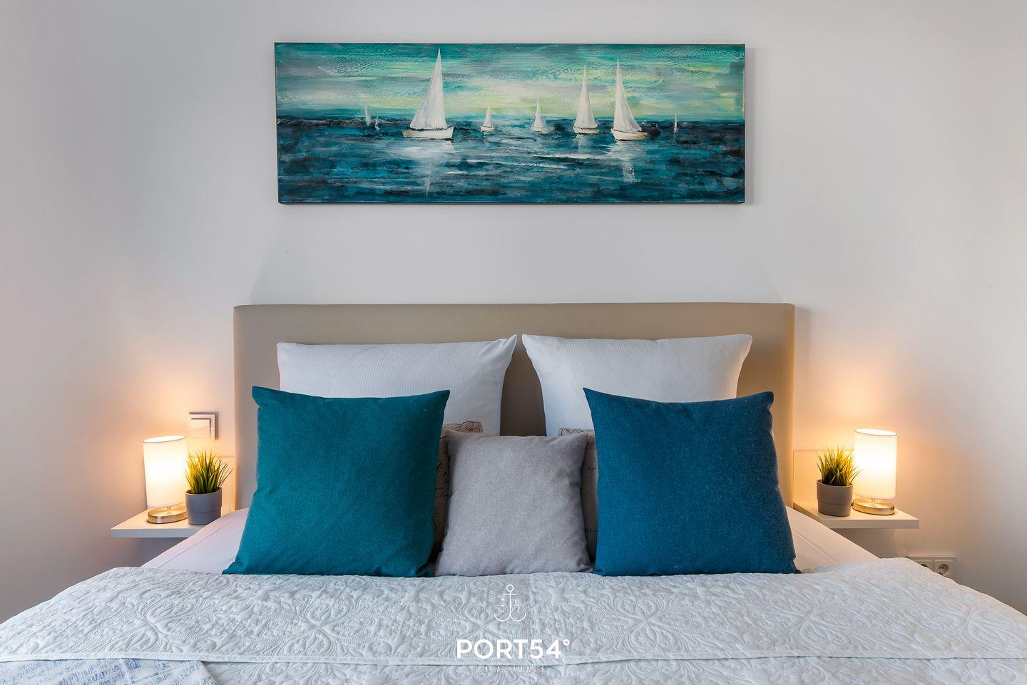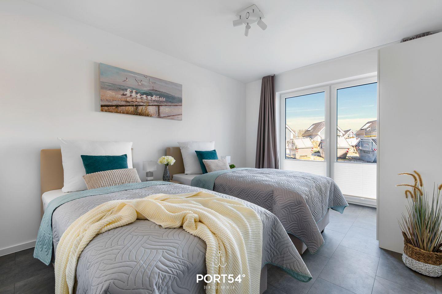 Die Wohnung verfügt über zwei gemütliche Schlafzimmer. Eines der Zimmer ist mit einem komfortablen Doppel-Boxspringbett sowie einem zusätzlichen Smart-TV ausgestattet. Das zweite Schlafzimmer bietet dir zwei Einzel-Boxspringbetten, die bei Bedarf auch zusammengeschoben werden können. Beide Schlafräume sind mit Maß-Plissees, Insektenschutz-Schiebeanlagen sowie separaten Verdunkelungsgardinen ausgestattet und sorgen so für angenehme Nächte und erholsamen Schlaf.