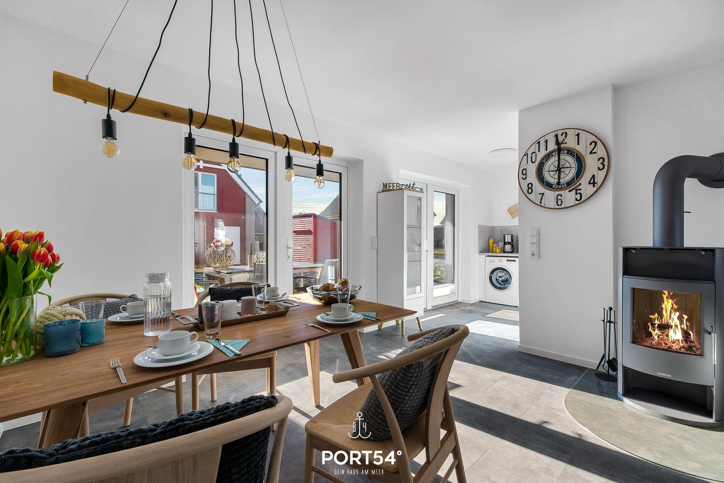 Die moderne und hochwertig ausgestattete Küche bietet dir alles, was du für einen unbeschwerten Aufenthalt brauchst. Zur Ausstattung gehören unter anderem eine Waschmaschine, ein Geschirrspüler, eine Kaffeemaschine, ein Wasserkocher, ein Toaster und eine Mikrowelle. Hier kannst du ganz bequem gemeinsam kochen und den Urlaub in deinem eigenen Rhythmus genießen.