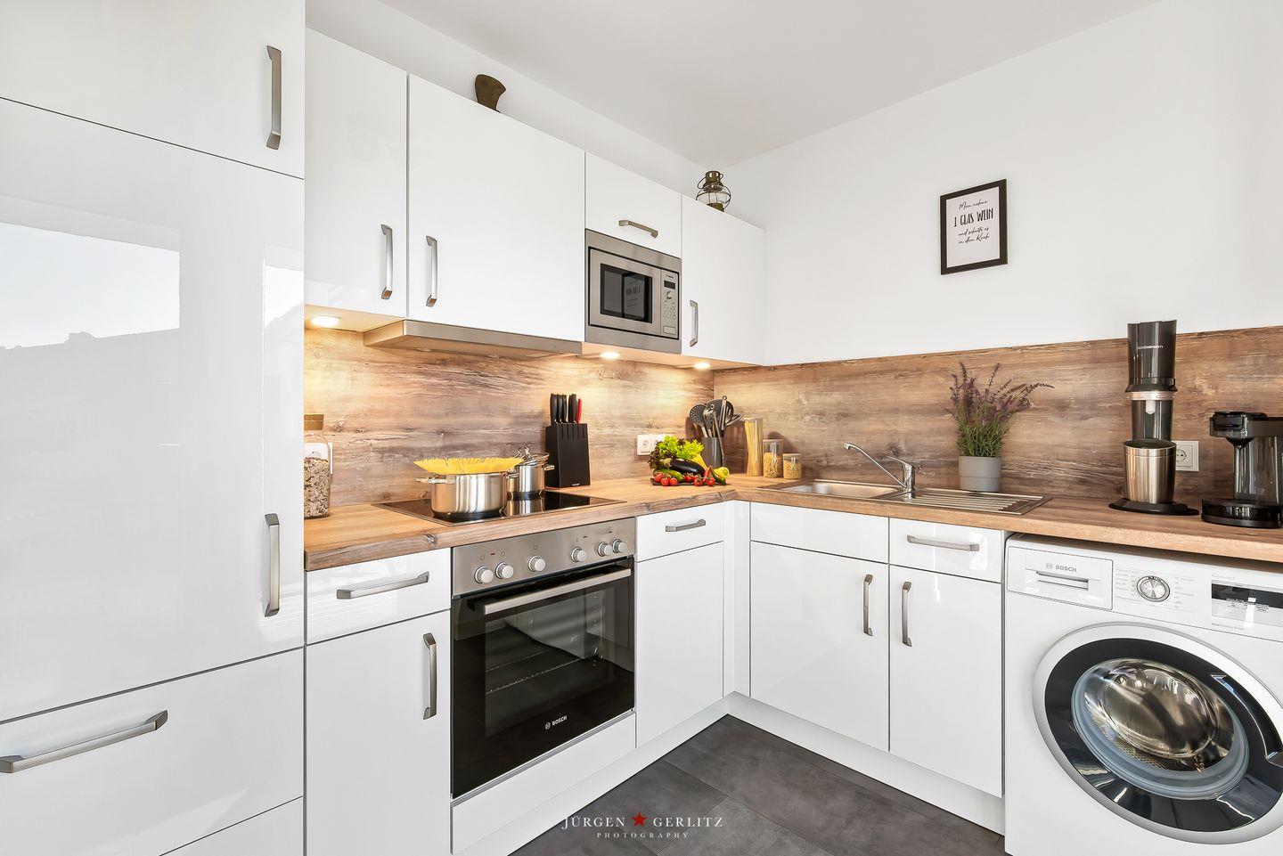 Die moderne und hochwertig ausgestattete Küche lässt kaum Wünsche offen und lädt dazu ein, den Urlaub ganz entspannt zu genießen. Ob du dir morgens einen frischen Kaffee zubereitest, mittags eine Kleinigkeit kochst oder abends gemeinsam ein ausgiebiges Essen planst – hier findest du alles, was du brauchst. Neben Geschirrspüler und Waschmaschine stehen dir auch eine Switch-Kaffeemaschine, ein Sodastream und viele weitere praktische Extras zur Verfügung. Zusätzlichen Komfort bietet dir die Abstellkammer mit Staubsauger sowie Bügeleisen und Bügelbrett.