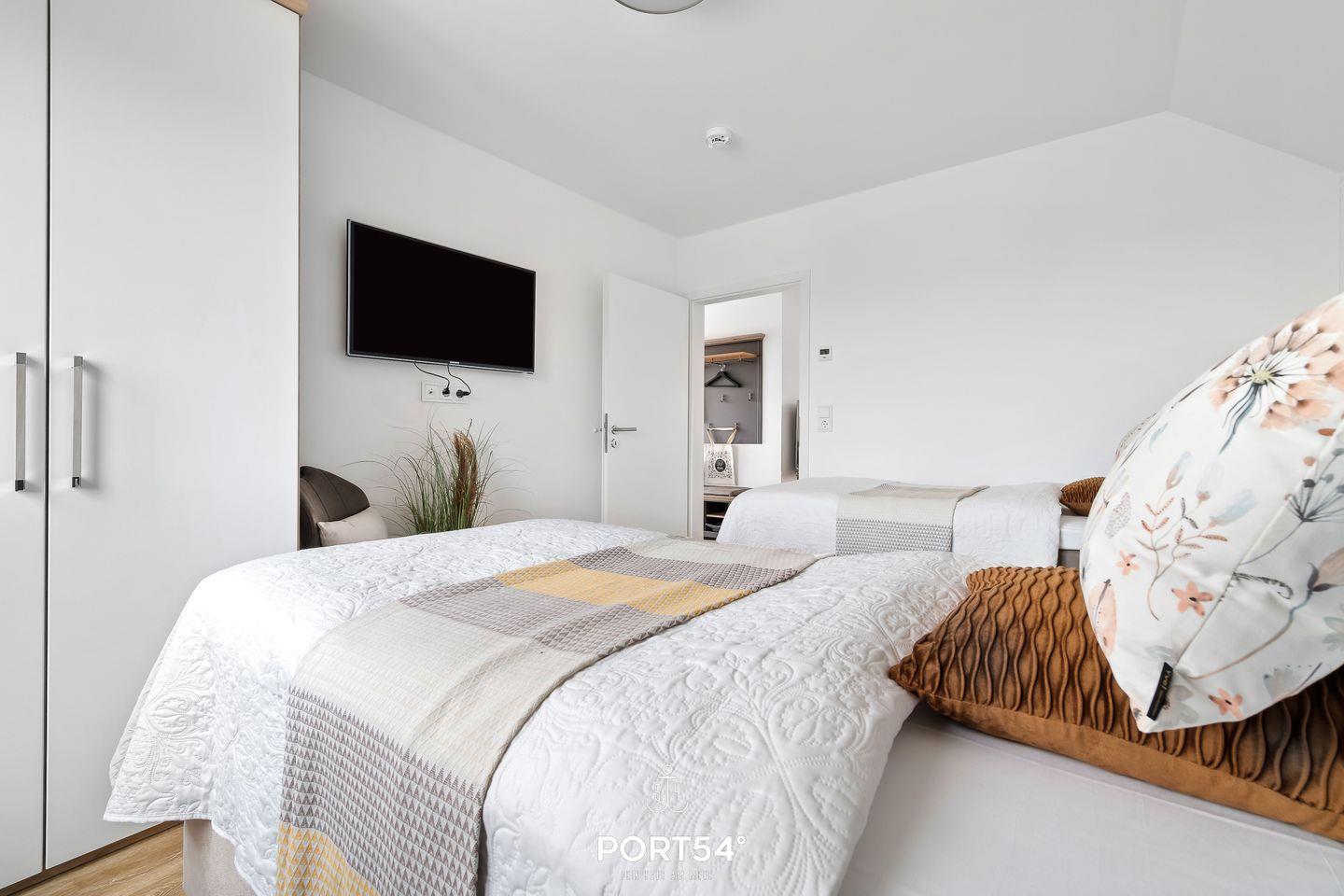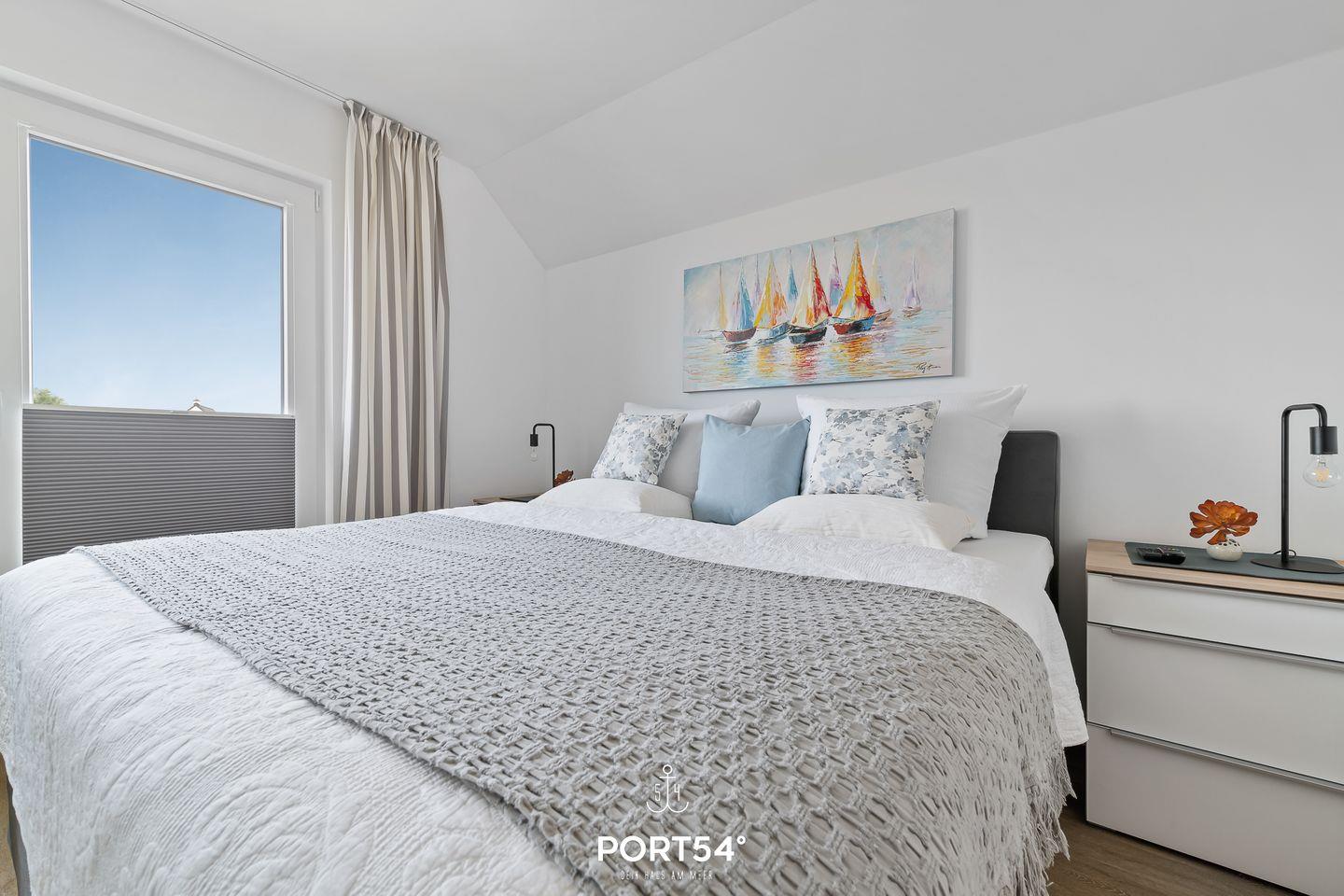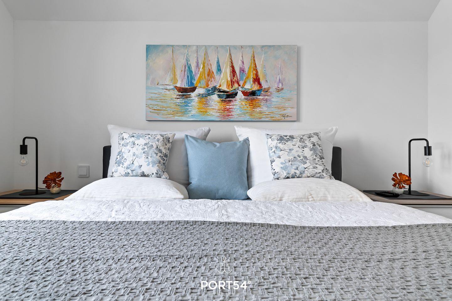 Die beiden Schlafzimmer sind mit hochwertigen Boxspringbetten ausgestattet und bieten dir beste Voraussetzungen für erholsame Nächte. Eines der Zimmer verfügt über ein Doppel-Boxspringbett (180 x 200 cm), das andere über zwei Einzel-Boxspringbetten (90 x 200 cm). In beiden Schlafzimmern findest du Verdunkelungsplissees, Insektenschutz vor den Fenstern, einen Smart-TV mit Magenta-TV sowie einen Kleiderschrank mit Spiegel. So hast du angenehme Rückzugsorte, in denen du Ruhe, Komfort und erholsamen Schlaf genießen kannst.