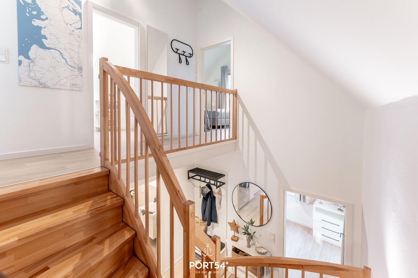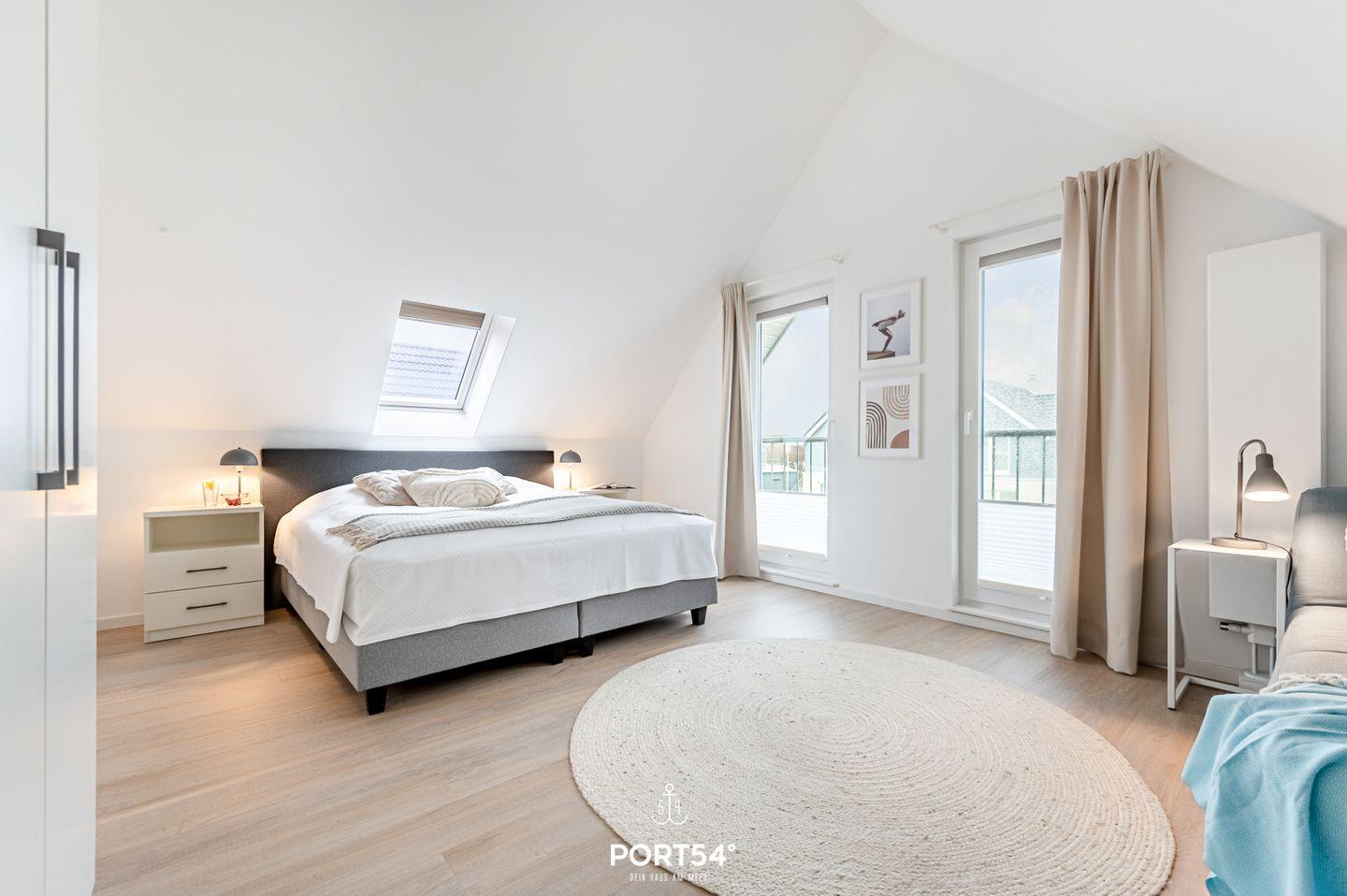 Auf 2 Etagen befinden sich insgesamt 3 Schlafzimmer, 2 Bäder, sowie eine offene Küche mit angrenzendem Wohn- und Essbereich und Kaminofen. Die Schlafzimmer sind mit 2 Doppelbetten und 2 Einzelbetten ausgestattet. Das Duschbad im EG bietet eine Infrarotsaune, im OG finden Sie ein Wannenbad. Die Terrasse ist vollmöbliert und mit einem Grill ausgestattet. Vor dem Haus befinden sich 2 PKW-Stellplätze und ein abschließbarer Fahrradschuppen.
