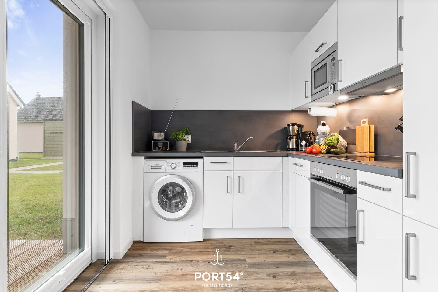 Vom Essbereich aus blickst du direkt in die moderne, offene und voll ausgestattete Küche. Hier bleiben kaum Wünsche offen und du kannst den Urlaub ganz entspannt genießen – ob beim ausgedehnten Frühstück, beim Kochen mit der Familie oder bei gemütlichen Abenden mit leckeren gemeinsamen Mahlzeiten.