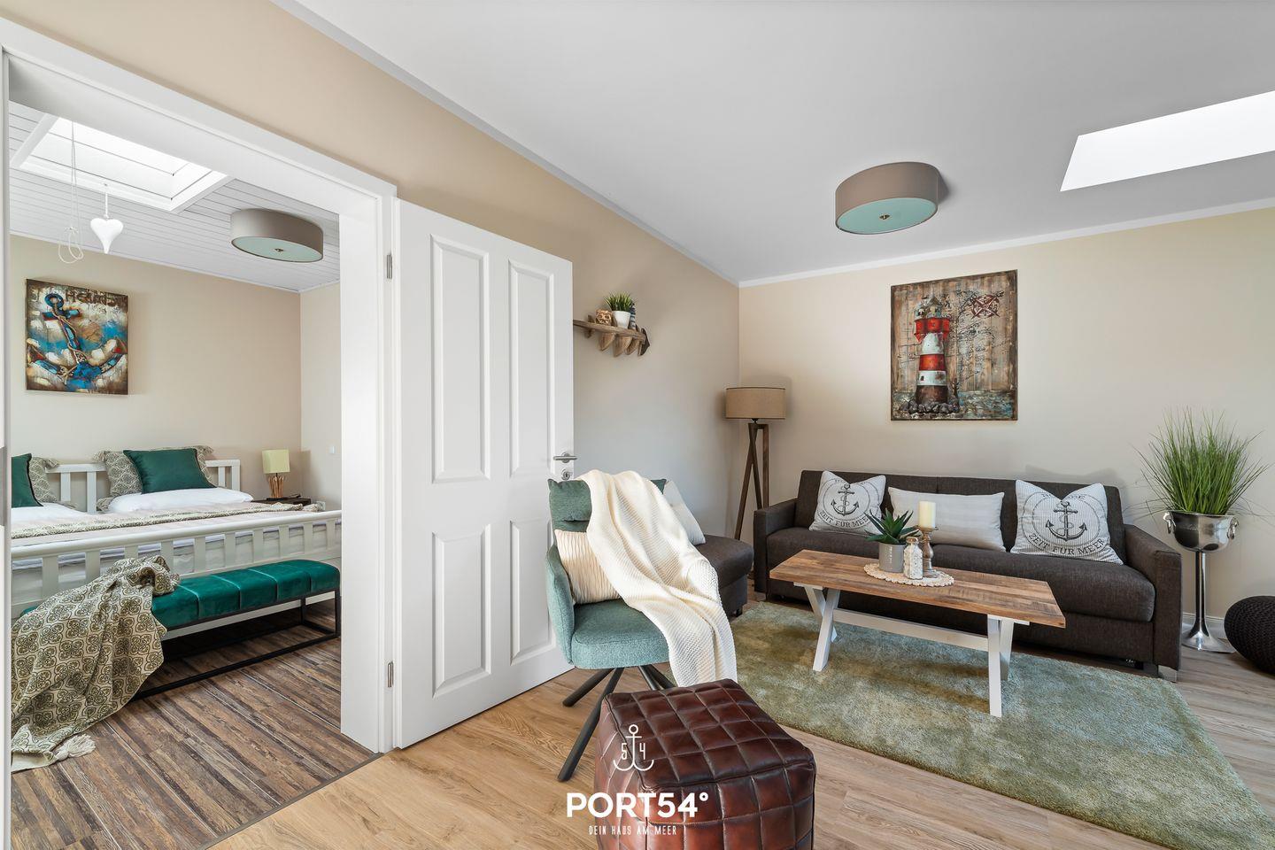 Im Wohnzimmer stehen dir zudem ein Schlafsofa und ein Flatscreen-TV zur Verfügung.