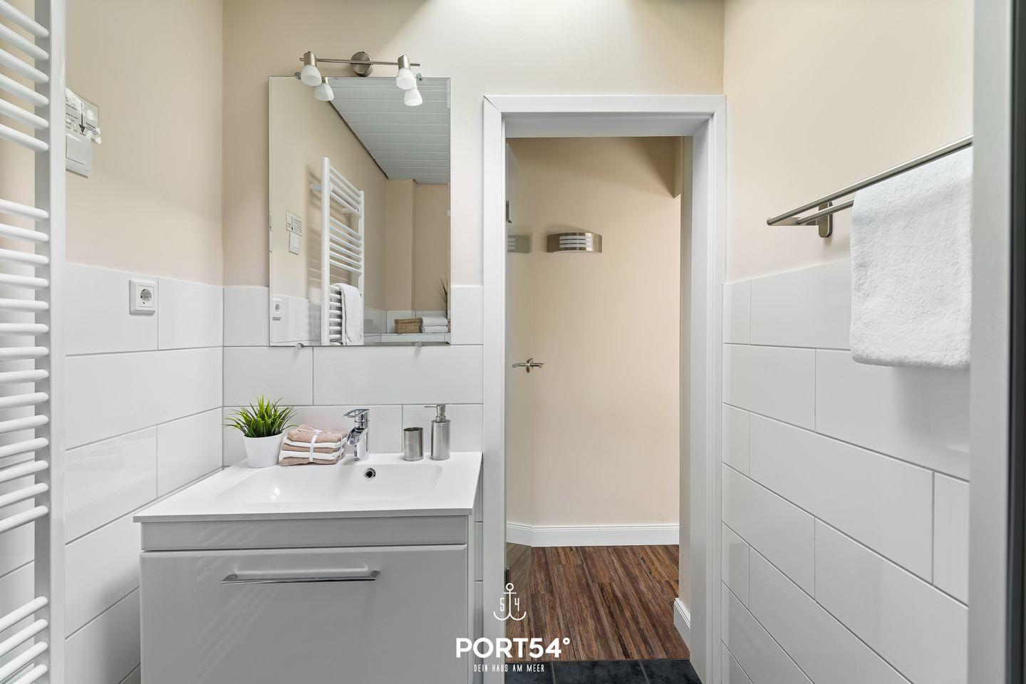 Die Ferienwohnung „Deck 3“ in Büsum bietet auf 40 m² im Erdgeschoss Platz für bis zu 3 Personen. Die 2-Zimmer-Unterkunft verfügt über ein Schlafzimmer sowie zwei Badezimmer mit Dusche.