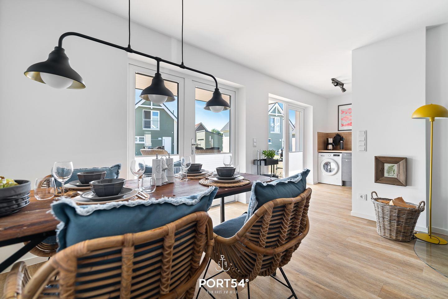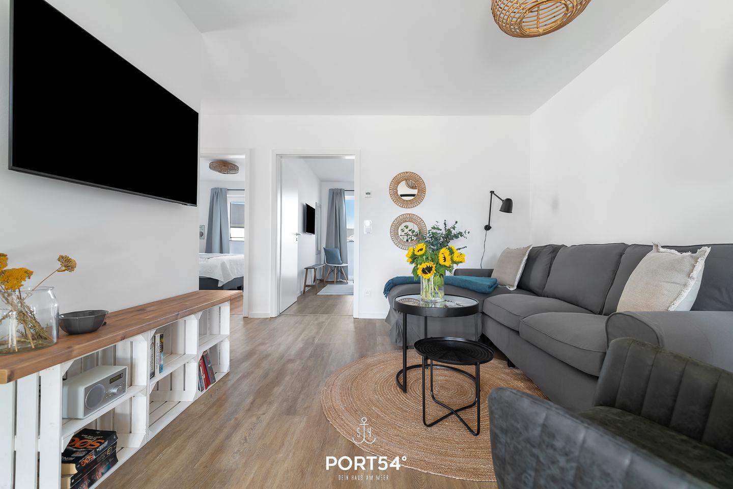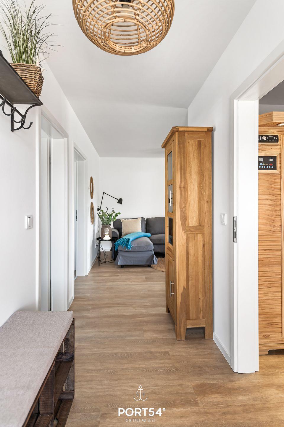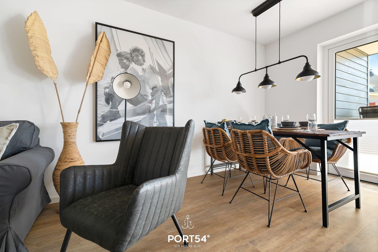 Die im Erdgeschoss gelegene Wohnung bietet dir viel Komfort und eine freundliche Wohlfühlatmosphäre. Das Herzstück ist der helle und geräumige Wohn- und Essbereich, der mit seiner gemütlichen Einrichtung sofort für Urlaubsgefühl sorgt. Auf der bequemen Couch kannst du es dir nach einem erlebnisreichen Tag wunderbar gemütlich machen. Besonders in der kalten Jahreszeit entfaltet die Wohnung ihren besonderen Charme: Dann sorgt der Kamin für wohlige Wärme und eine behagliche Atmosphäre, während dich die Infrarot-Sauna zu entspannenden Wohlfühlmomenten einlädt. Nach einem langen Strandspaziergang kannst du hier wunderbar abschalten, aufwärmen und den Tag entspannt ausklingen lassen.