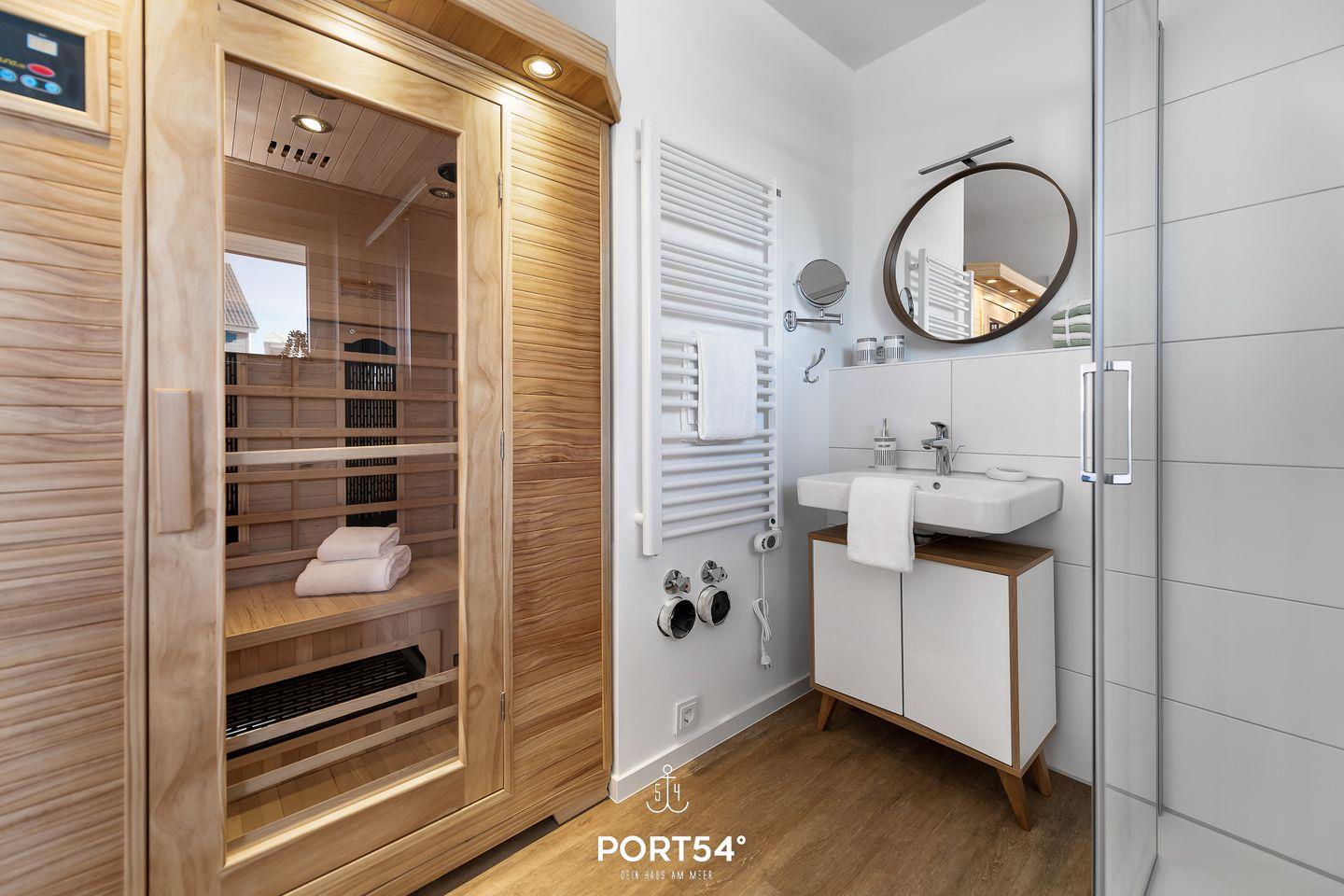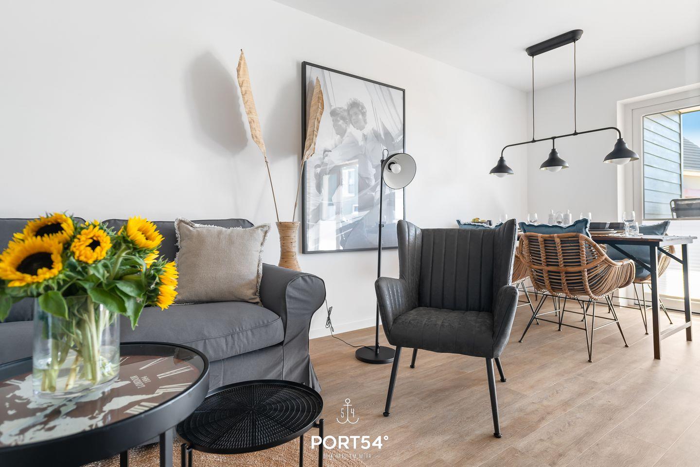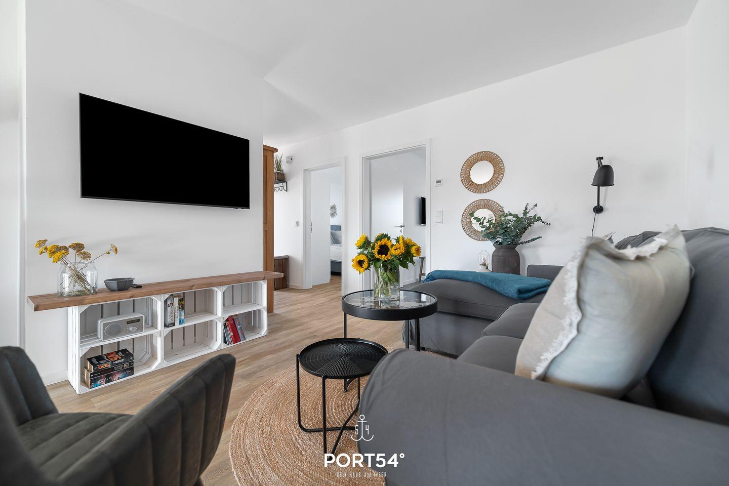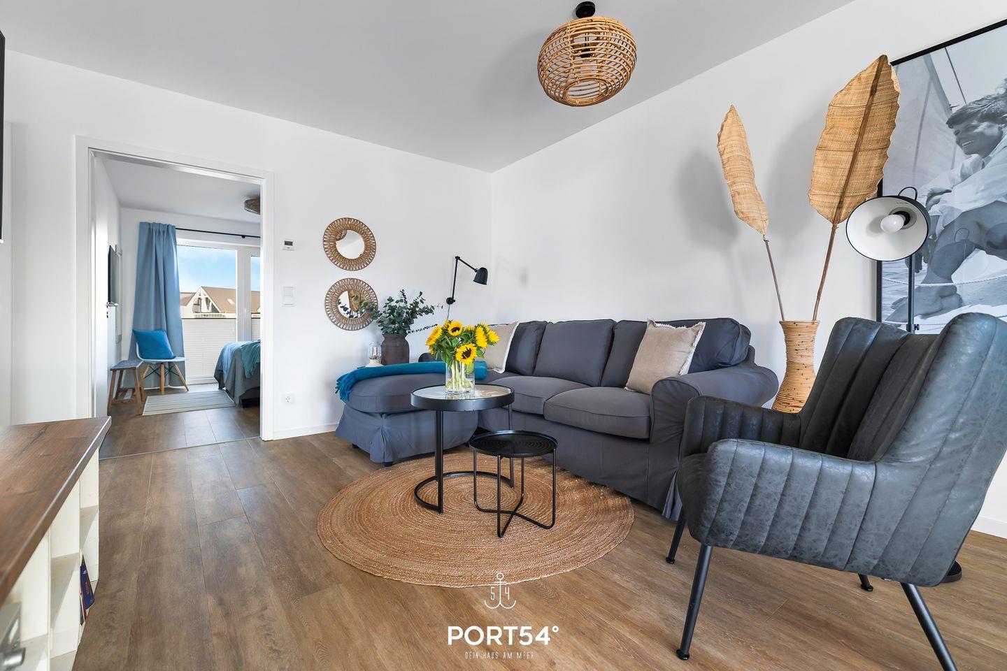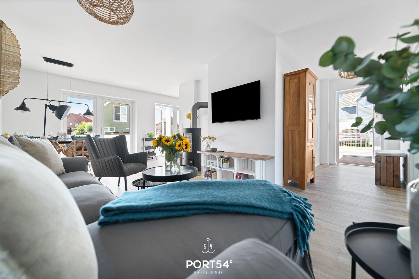 Die im Erdgeschoss gelegene Wohnung bietet dir viel Komfort und eine freundliche Wohlfühlatmosphäre. Das Herzstück ist der helle und geräumige Wohn- und Essbereich, der mit seiner gemütlichen Einrichtung sofort für Urlaubsgefühl sorgt. Auf der bequemen Couch kannst du es dir nach einem erlebnisreichen Tag wunderbar gemütlich machen. Besonders in der kalten Jahreszeit entfaltet die Wohnung ihren besonderen Charme: Dann sorgt der Kamin für wohlige Wärme und eine behagliche Atmosphäre, während dich die Infrarot-Sauna zu entspannenden Wohlfühlmomenten einlädt. Nach einem langen Strandspaziergang kannst du hier wunderbar abschalten, aufwärmen und den Tag entspannt ausklingen lassen.