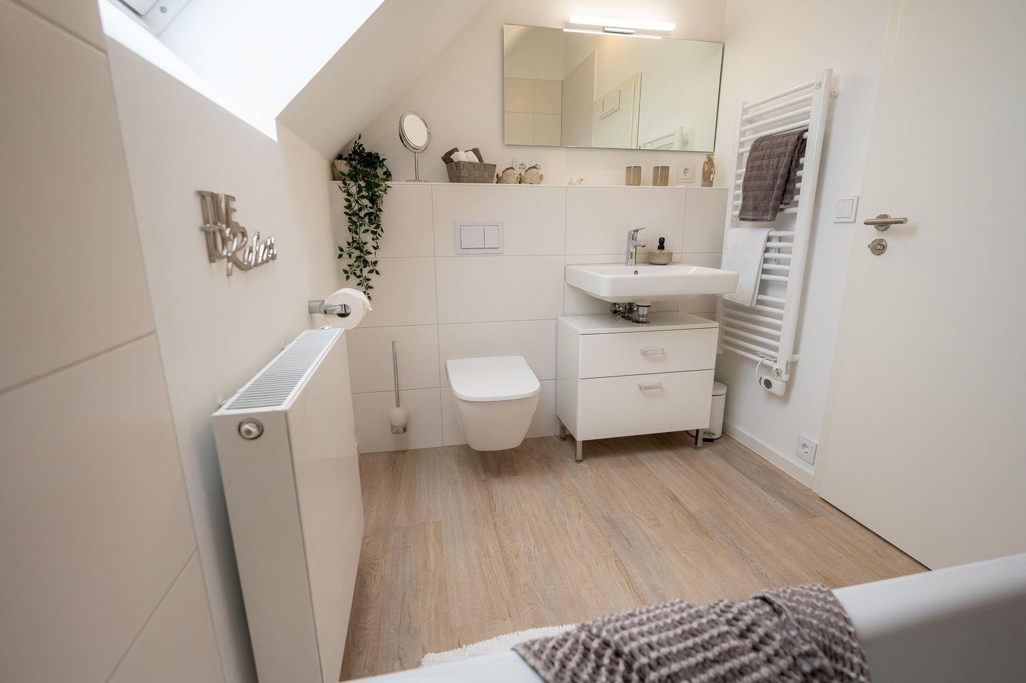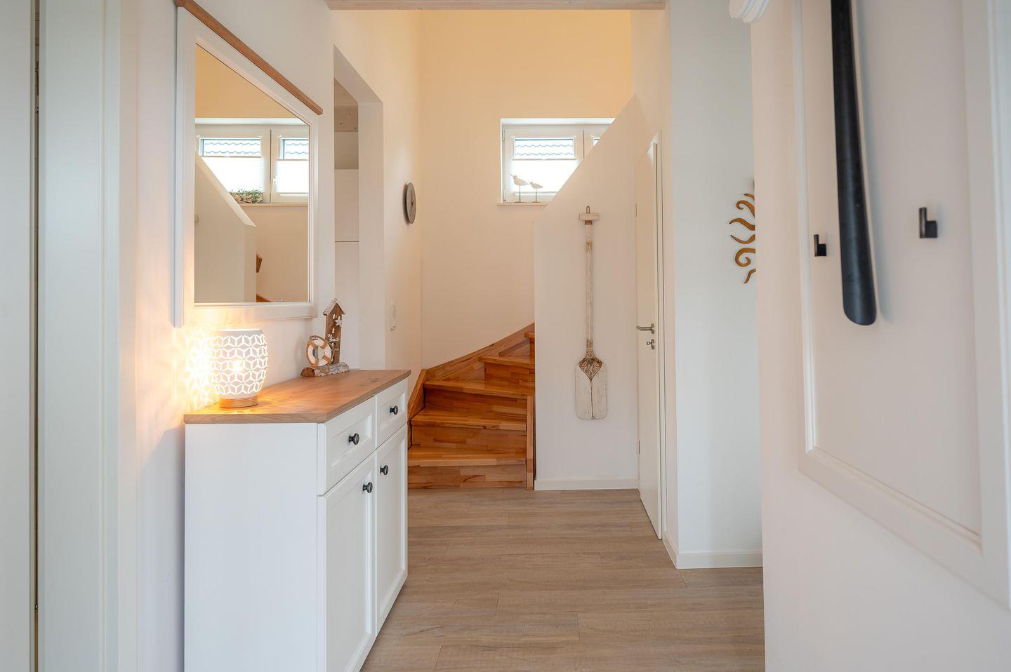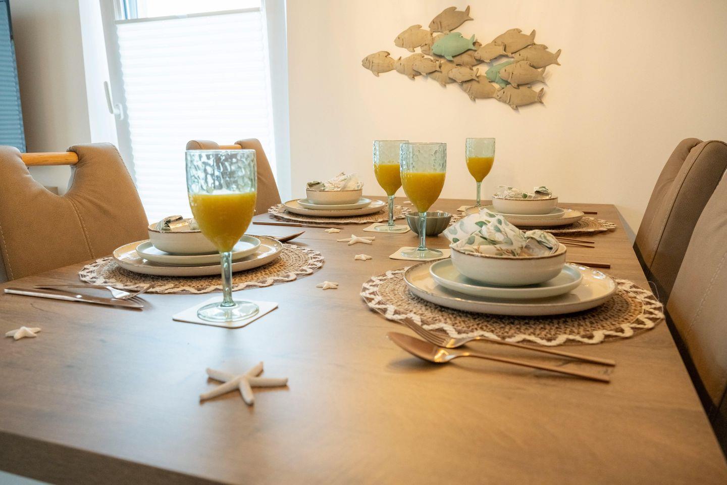 Das Ferienhaus "Marschengrün" bietet auf 88m² über zwei Etagen Platz für bis zu 5 Personen. Es erwartet Sie ein Ferienhaus mit zwei Schlafzimmer, einem offenen Wohn- und Essbereich mit angrenzender, vollausgestatteter Küche, sowie zwei Badezimmern. Eines der beiden Schlafzimmer verfügt über ein gemütliches Doppelbett (180x200cm), das andere über zwei Einzelbetten (je 90x200cm) und zusätzlich steht ein ausziehbarer Schlafsessel zur Verfügung. Beide Schlafzimmer sind komplett verdunkelbar, zusätzlich mit Mückengitter ausgestattet und verfügen zudem über einen Flachbild-TV. Auf der gemütlichen Schlafcouch im Wohnzimmer findet zusätzlich 1 Person einen Ausweichschlafplatz. Im Badezimmer im Erdgeschoss können Sie es sich in der Infrarot-Sauna gemütlich machen. Das Badezimmer im Obergeschoss lädt mit einer Badewanne zum Verweilen ein. Genießen Sie Ihren Nordseeurlaub auf der möblierten Terrasse - ein Holzkohlegrill lädt zu entspannten Grillabenden ein. Ein Parkplatz und ein abschließbarer Fahrradschuppen bieten Platz für Ihr Auto und mitgebrachte bzw. ausgeliehene Fahrräder. Sollten Sie Ihren Nordseeurlaub mit der ganzen Familie und Freunden verbringen wollen, können wir Ihnen durch die Verwaltung mehrerer Objekte auch eine Symbiose aus 2 nebeneinander liegenden Ferienunterkünften ermöglichen.