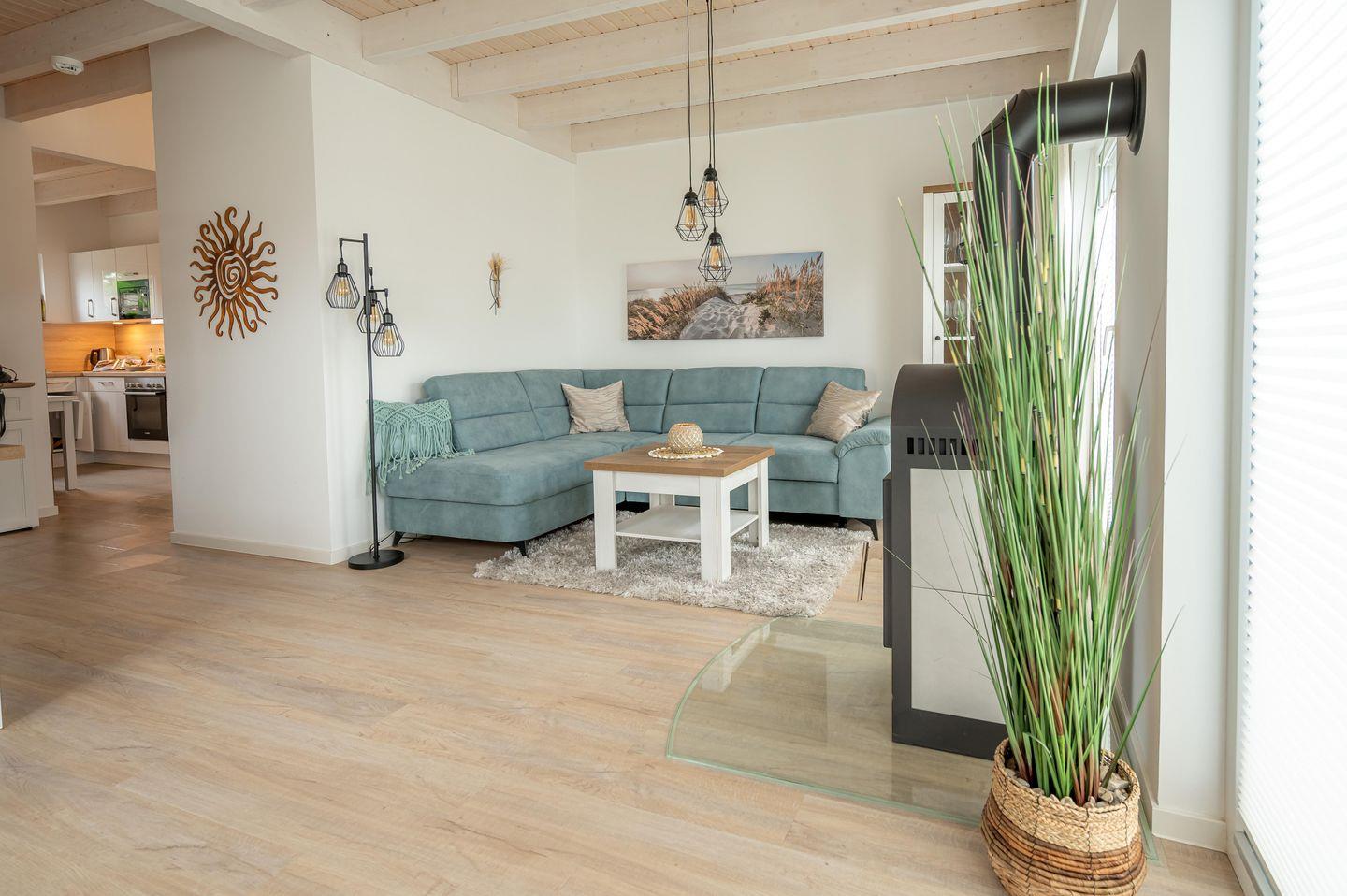 Der offenen Wohn- und Essbereich mit angrenzender, vollausgestatteter Küche bietet einen Zugang zur möblierten Terrasse mit Grill. Eines der beiden Schlafzimmer verfügt über ein Doppelbett, das andere über zwei Einzelbetten. Auf der Schlafcouch im Wohnzimmer finden zusätzlich zwei Personen Platz. Das Duschbad im EG verfügt über eine Infrarot-Sauna. Im OG steht Ihnen ein Wannenbad zur Verfügung. Ein Parkplatz und ein abschließbarer Fahrradschuppen gehören zum Haus.