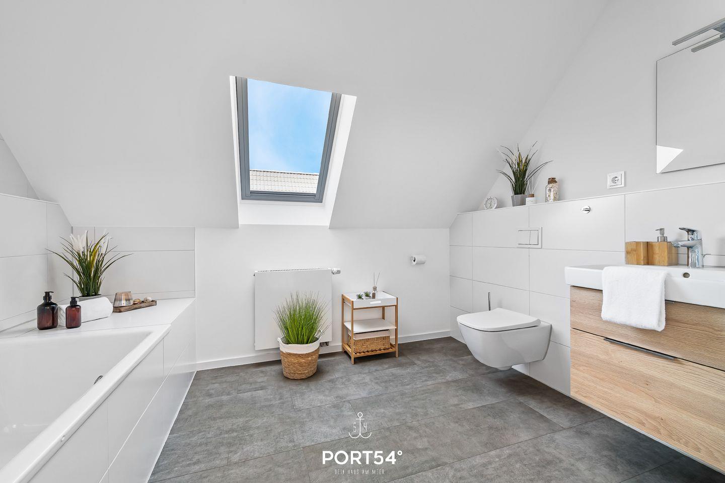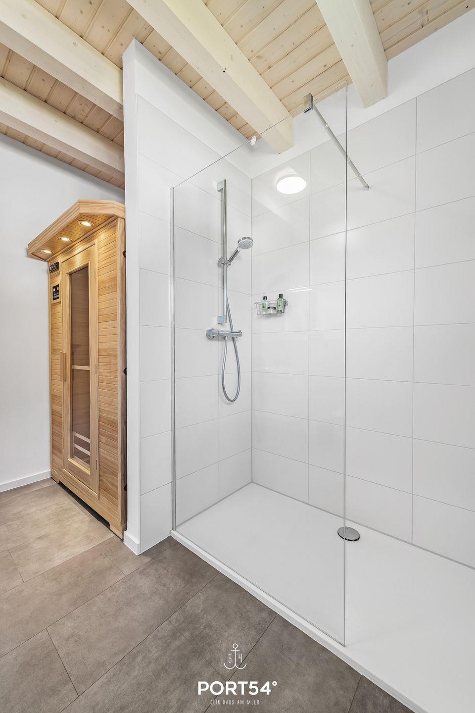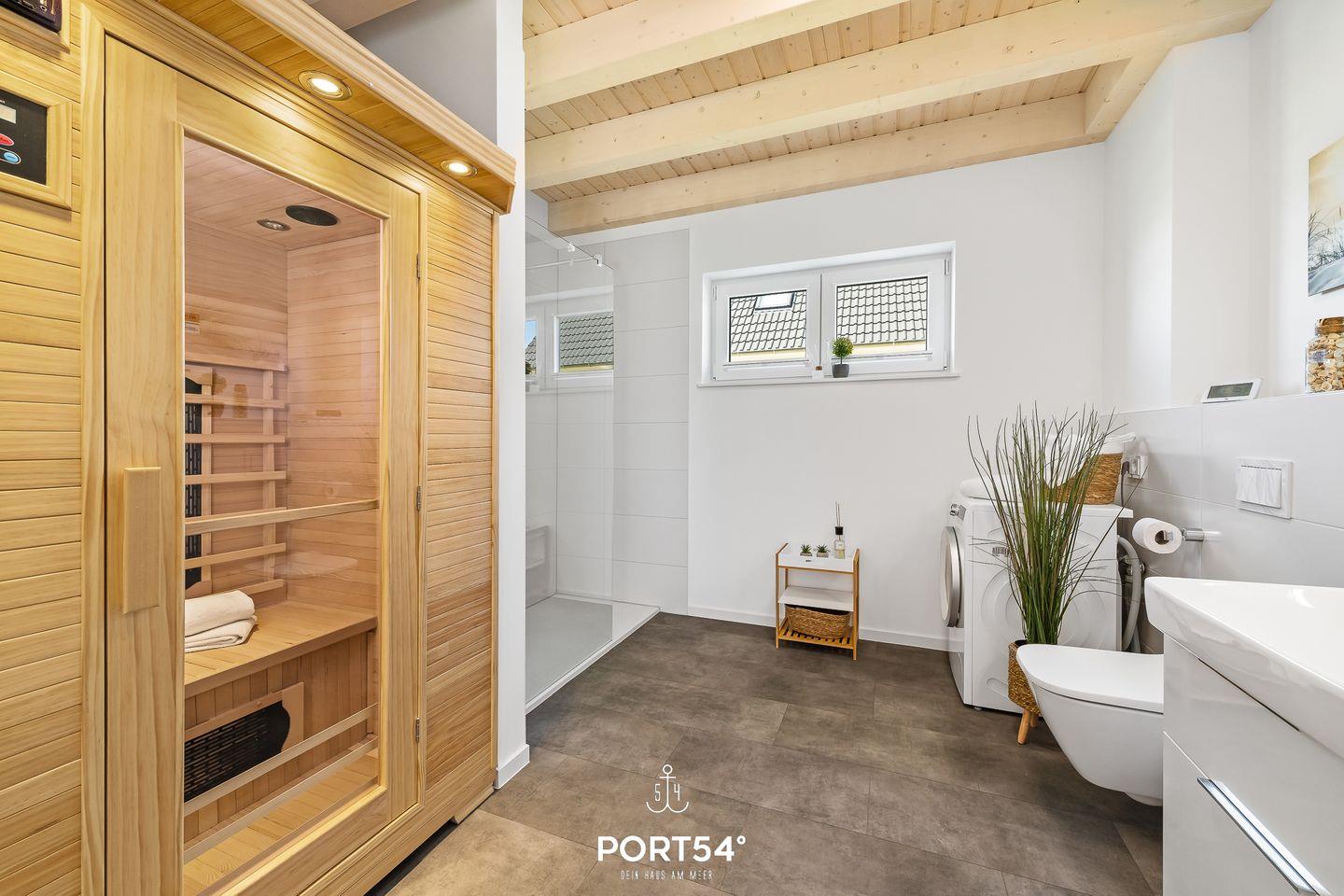 Zwei Badezimmer mit bodengleichen Duschen und Badewanne bieten Dir hohen Komfort. Zusätzlich stehen Dir eine Waschmaschine, Bügeleisen, Bügelbrett und Wäscheständer zur Verfügung. Auch ein Haartrockner ist vorhanden. Für Familien sind ein Babybett und ein Kinderhochstuhl vorhanden. Haustiere sind willkommen (max. 2).