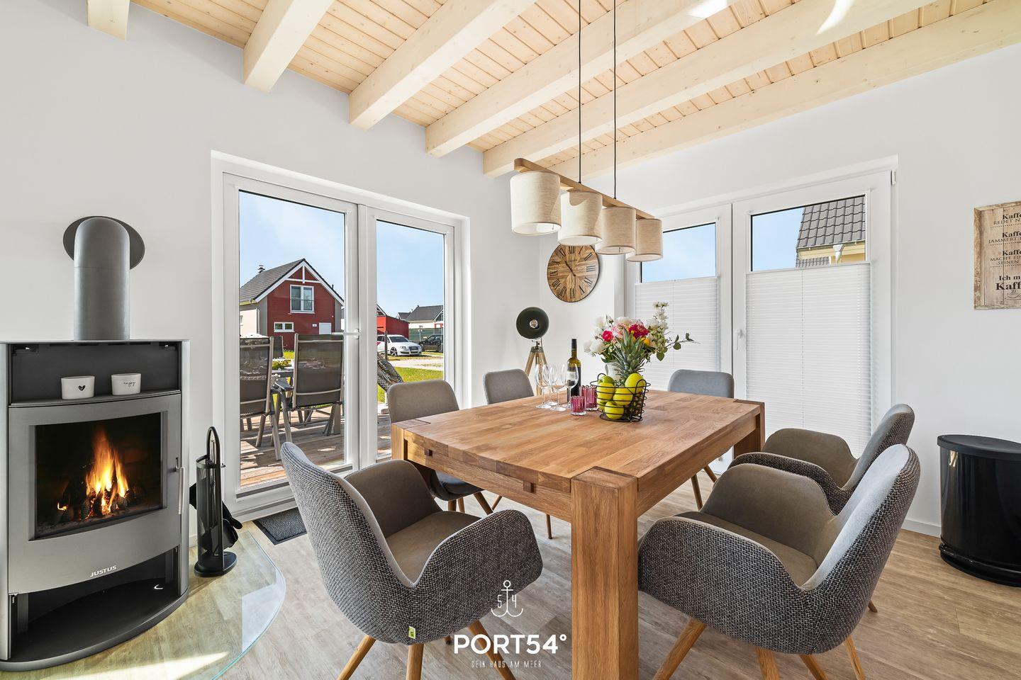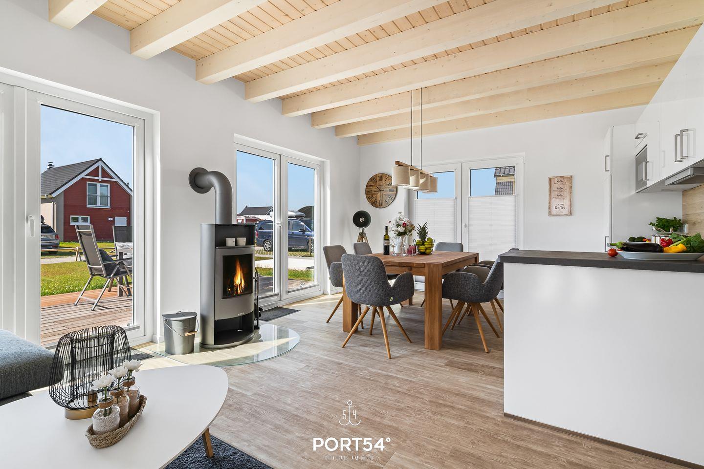 Der helle Wohnbereich lädt mit gemütlicher Sofaecke und Kaminofen zum Entspannen ein – ideal für erholsame Abende nach einem Tag am Meer. Fußbodenheizung im gesamten Haus sorgt zu jeder Jahreszeit für ein angenehmes Wohnklima. Für Unterhaltung stehen Dir 2 TVs sowie WLAN zur Verfügung. Das Haus ist ein Nichtraucherobjekt und erstreckt sich über zwei Etagen.