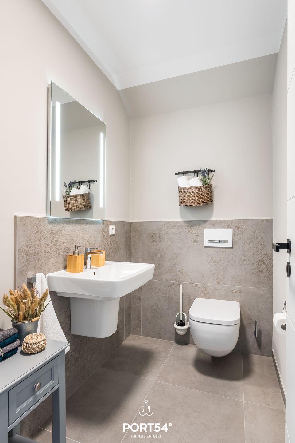 Wellness pur erlebst Du im Duschbad im Obergeschoss: finnische Sauna, Badewanne, große Dusche und separates WC laden dazu ein, nach langen Strandspaziergängen einfach die Seele baumeln zu lassen. Das Badezimmer im Erdgeschoss bietet eine zweite Dusche, clever getrennt vom unteren Schlafzimmer. Ein Treppenschutzgitter sorgt zusätzlich für Sicherheit.