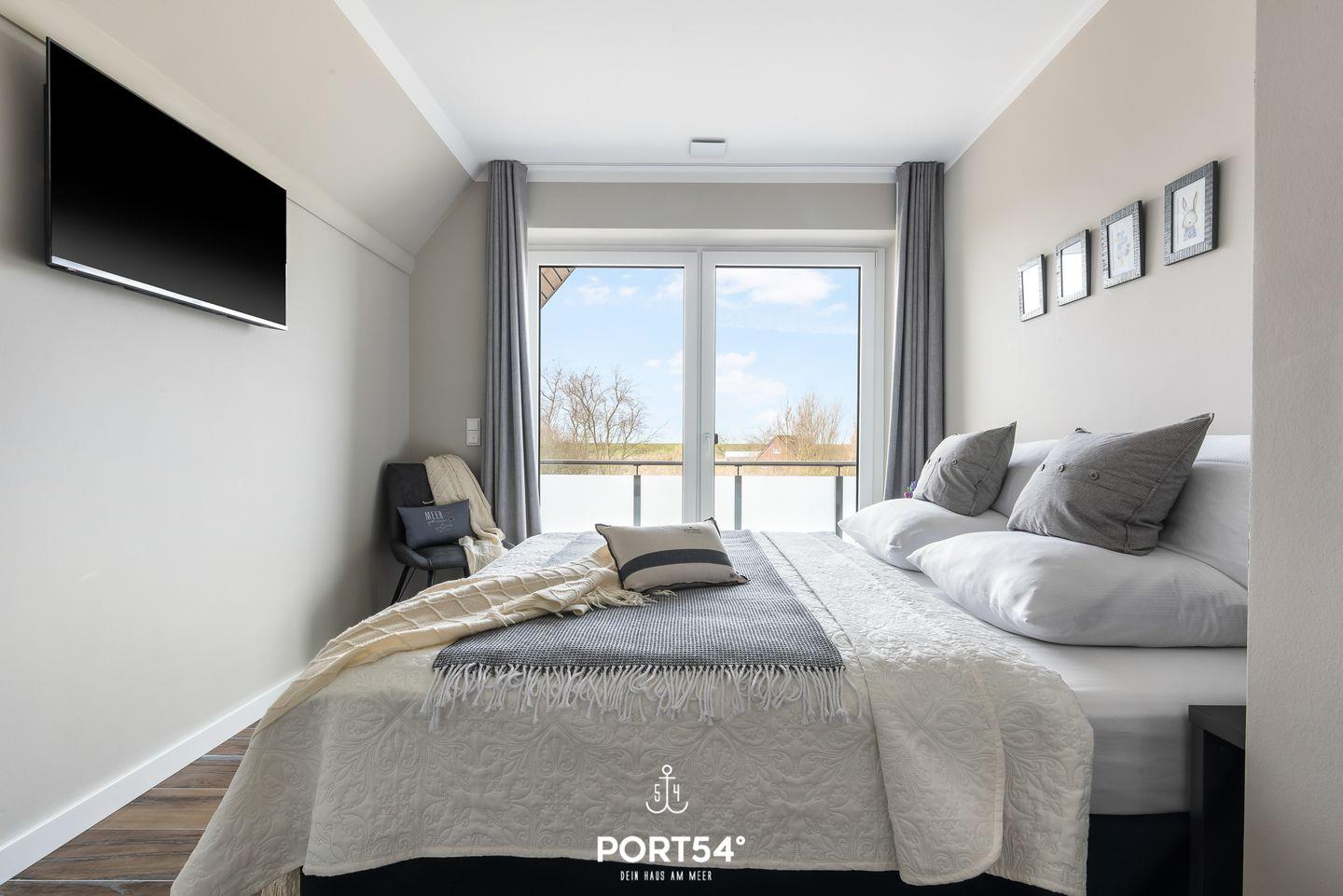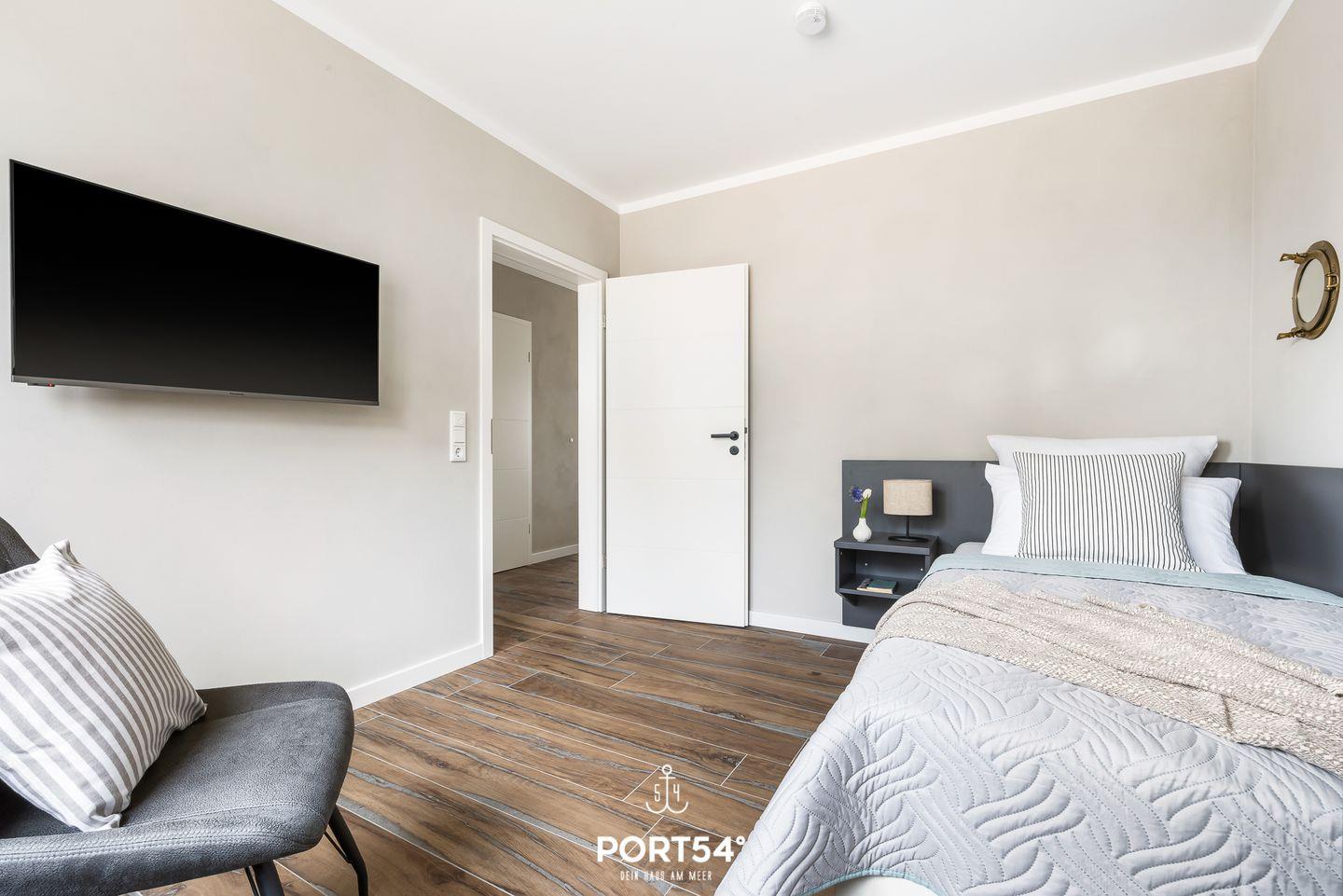 Das Schlafzimmer im Erdgeschoss ist mit einem höhenverstellbaren Einzelbett und einem Flachbild-TV ausgestattet, perfekt für einen erholsamen Start in den Tag. Die Schlafzimmer im Obergeschoss bieten jeweils ein großzügiges Doppelbett (180×200 cm), eines davon mit TV – alle Zimmer verfügen über Verdunklungsvorhänge, sodass Du nachts tief und ungestört schlafen kannst. Mückengitter in den Schlafzimmern, im Wohnzimmer und im Obergeschoss-Badezimmer sorgen dafür, dass Du Deine Ruhe in vollen Zügen genießen kannst.