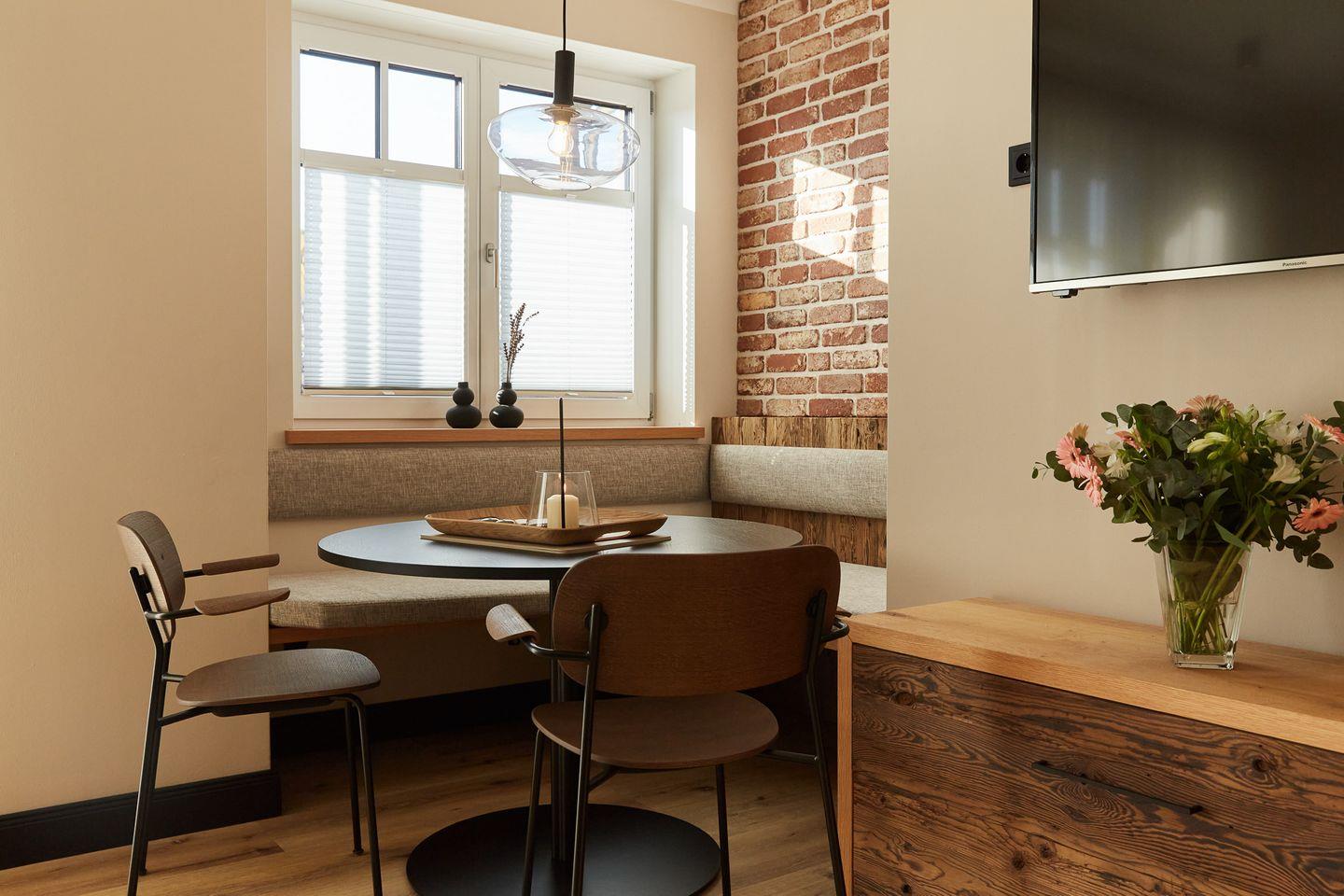 Auf rund 49 Quadratmetern finden zwei Gäste Ihr kleines Urlaubsrefugium mit einer modernen und hochwertigen Ausstattung. Genießen Sie das entspannte Ambiente im lässigen Industrial Style, das gleichzeitig jede Menge Cozyness versprüht. Zusätzlich sorgen schallisolierte 3-fach verglaste Fenster und eine Fußbodenheizung für maximale Behaglichkeit.
