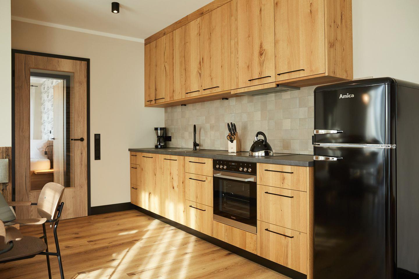 Auf rund 76 Quadratmetern finden sechs Gäste Ihr kleines Urlaubsrefugium mit einer modernen und hochwertigen Ausstattung. Genießen Sie das entspannte Ambiente im lässigen Industrial Style, das gleichzeitig jede Menge Cozyness versprüht. Zusätzlich sorgen schallisolierte 3-fach verglaste Fenster und eine Fußbodenheizung für maximale Behaglichkeit.