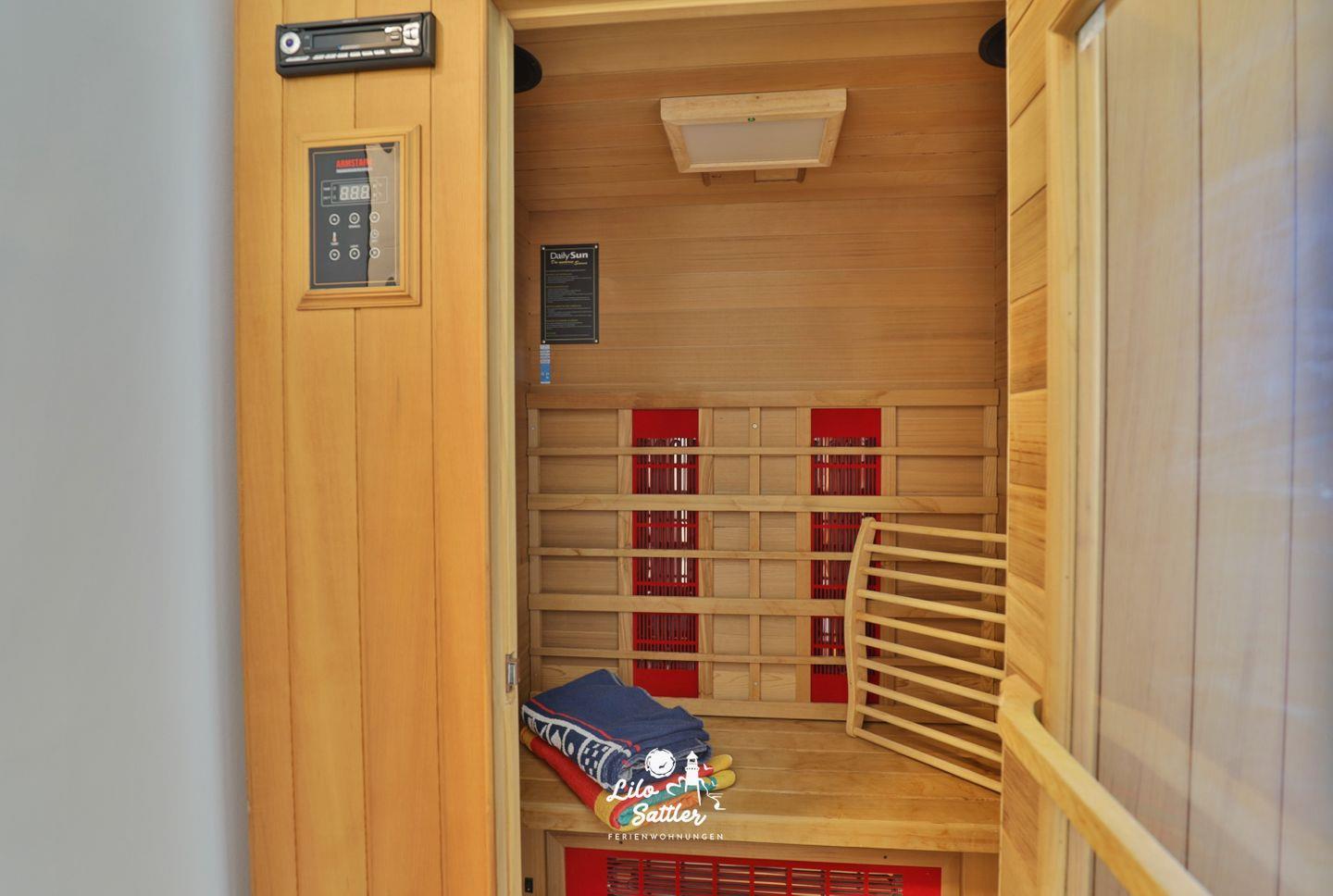 Im Obergeschoss erwarten Sie komfortable Schlafzimmer mit Zugang zum Westbalkon, von dem aus Sie herrliche Sonnenuntergänge erleben können. Ein besonderes Highlight ist die Infrarotkabine für zwei Personen, die zu wohltuender Entspannung einlädt. Ein zusätzliches Schlafzimmer im Erdgeschoss schafft weitere Rückzugsmöglichkeiten.