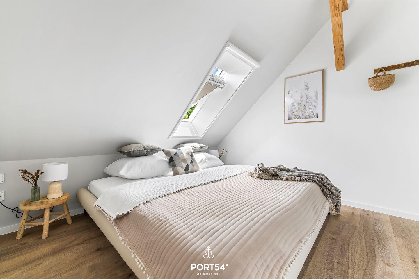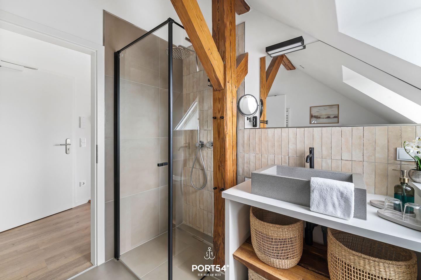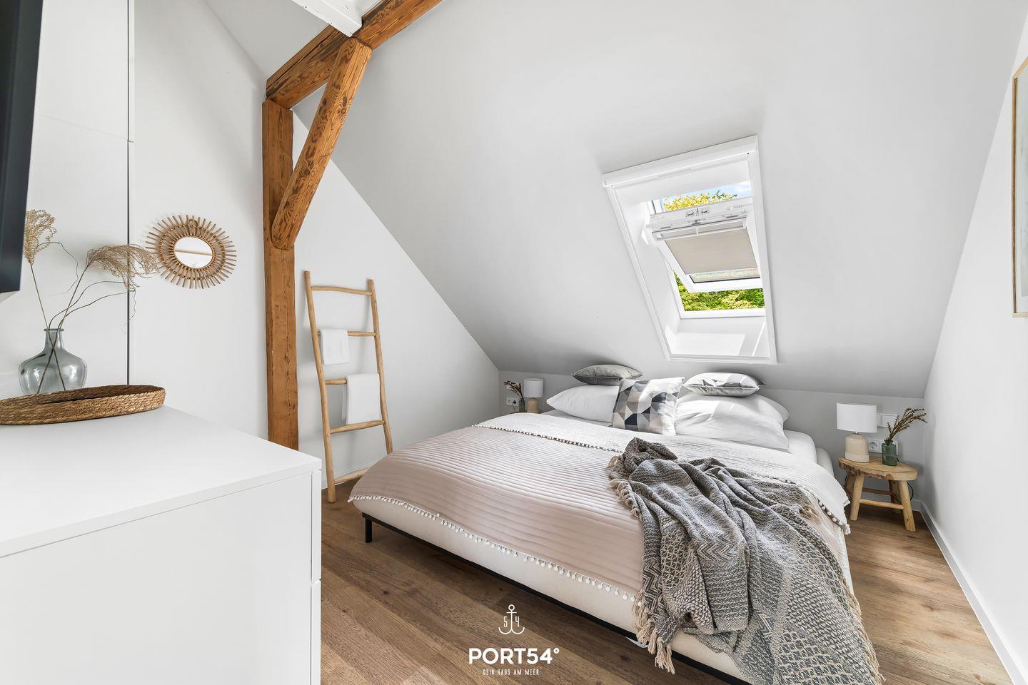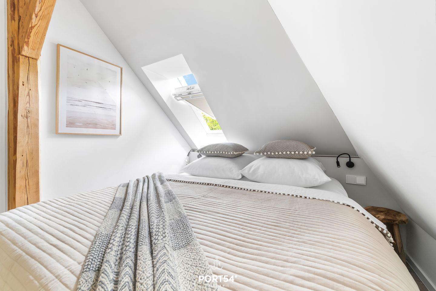 Die Wohnung bietet zwei komfortable Schlafzimmer mit hochwertigen Betten (160x200m und 180x200m), die für erholsamen Schlaf sorgen. Ideal für Familien: Ein Babybett und ein Hochstuhl stehen ebenfalls zur Verfügung, sodass auch die Kleinsten während des Urlaubs nicht zu kurz kommen. Das moderne Badezimmer verfügt über eine bodengleiche Dusche, einen Haartrockner und ausreichend Stauraum, sowie eine Waschmaschine– alles, was man für einen entspannten Aufenthalt benötigt.
