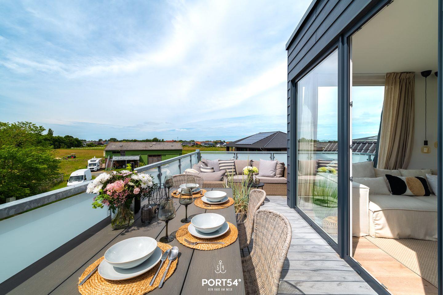 Die Ferienwohnung bietet auf 55m² Platz für 4 Personen. Es gibt zwei Schlafzimmer, einen offenen Wohn- und Essbereich, eine Küchenzeile und einen möblierten Balkon. Die Schlafzimmer verfügen jeweils über Doppelbetten, Flachbild-TV's und Verdunkelungsmöglichkeiten. In der vollausgestatteten hoch modernen Küche können leckere Gerichte gezaubert werden und im Wohnzimmer auf dem Sofa oder auf dem großen Balkon die Tage ausgeklungen werden. Ein Stellplatz und ein Fahrradschuppen sind vorhanden.