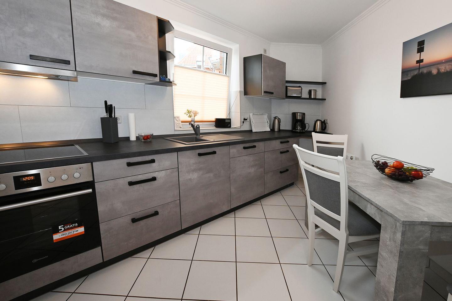 In der vollausgestatteten Küche finden Sie alles was das Herz begehrt um leckere Gerichte zuzubereiten. Backofen, Cerankochfeld, Mikrowelle, Geschirrspüler sind ebenso vorhanden, wie eine Kühl-Gefrierschrank-Kombination. Der Wohnbereich lädt zum gemütlichen Verweilen ein.