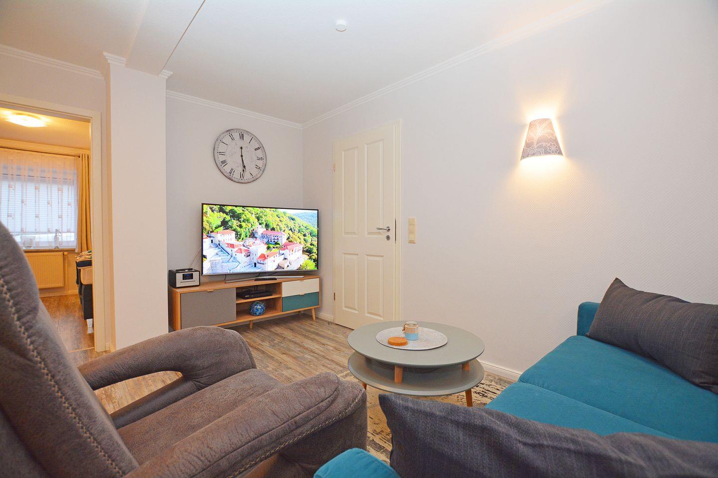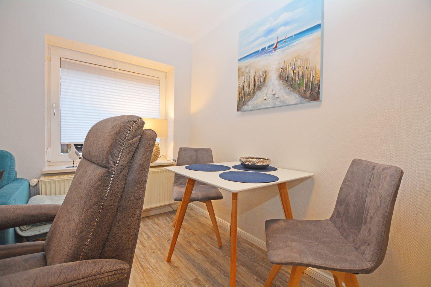 Haus Alina Ferienwohnung Auster empfängt Sie in Büsum mit einer komfortablen und modernen Atmosphäre, die sowohl für Paare als auch für kleine Familien hervorragend geeignet ist.