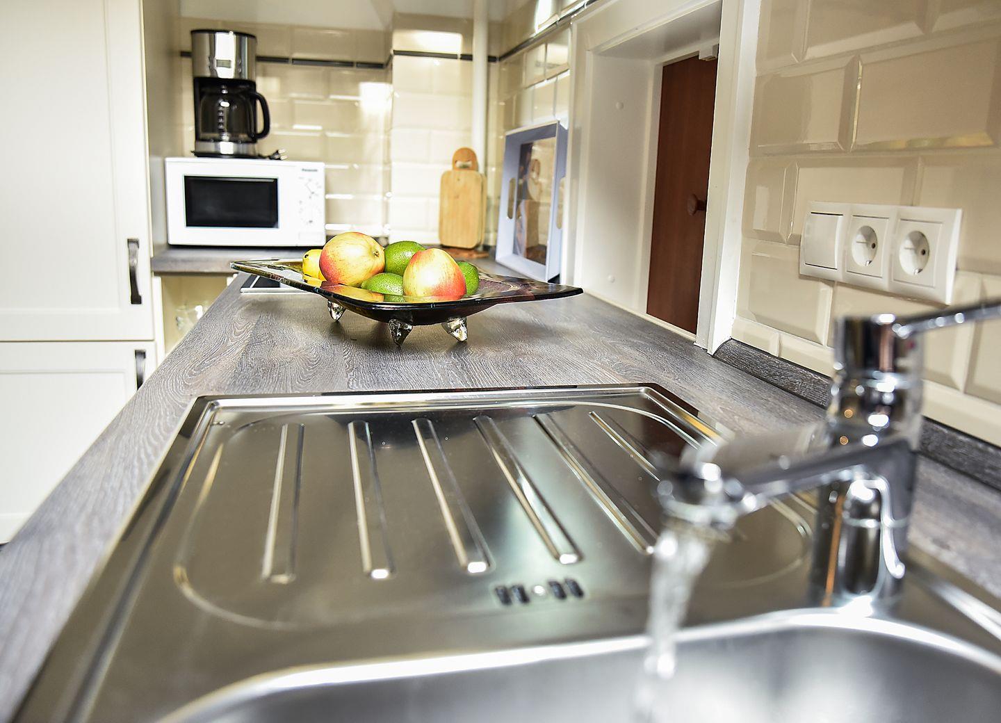 Die Bibliothek lädt mit zwei eleganten Sesseln und einem Hocker zum Verweilen ein. Eine Stereoanlage, eine gut gefüllte Bücherwand und ein Telefon stehen Ihnen zur Verfügung, um Ihre Ruhezeit nach Belieben zu gestalten. Das Esszimmer beeindruckt mit einem großen Esstisch und sechs Stühlen. Eine praktische Durchreiche zur Küche erleichtert den Service. Die voll ausgestattete Küche verfügt über ein Cerankochfeld, Backofen, Geschirrspüler, Kühlschrank, Kaffeemaschine, Mikrowelle, Wasserkocher, Eierkocher und Toaster. Ein kleiner Tisch mit zwei Stühlen bietet einen gemütlichen Ort für das Frühstück.