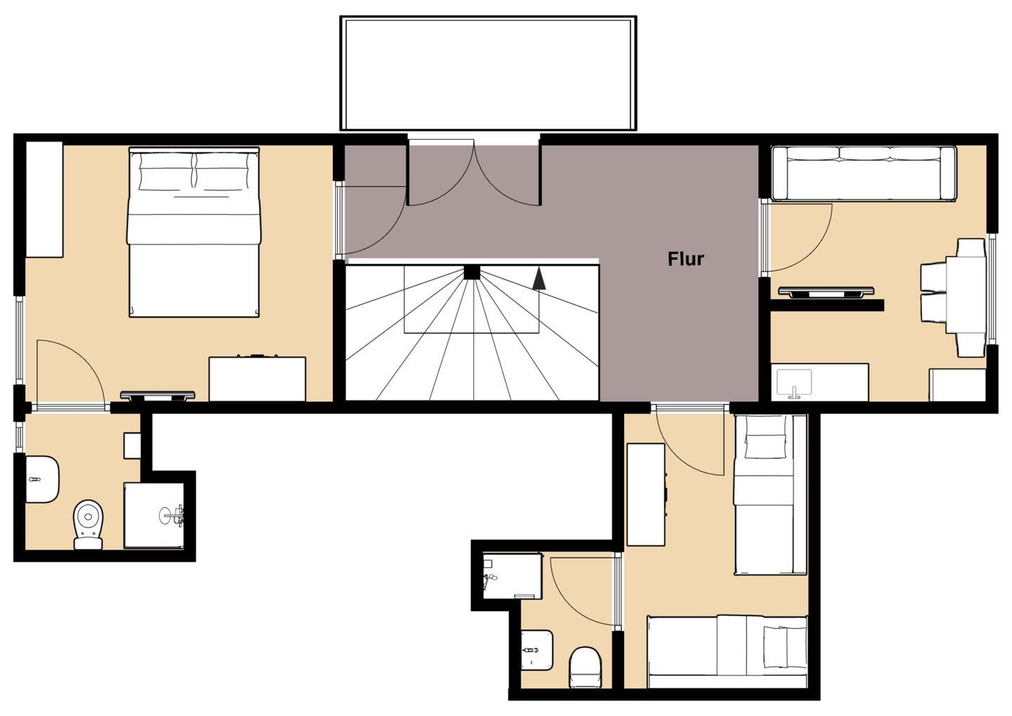 Sie erreichen dieses Apartment über eine Treppe im 1. Obergeschoss. Am Treppenaufgang befindet sich ein kleiner Vorflur und eine Garderobe.