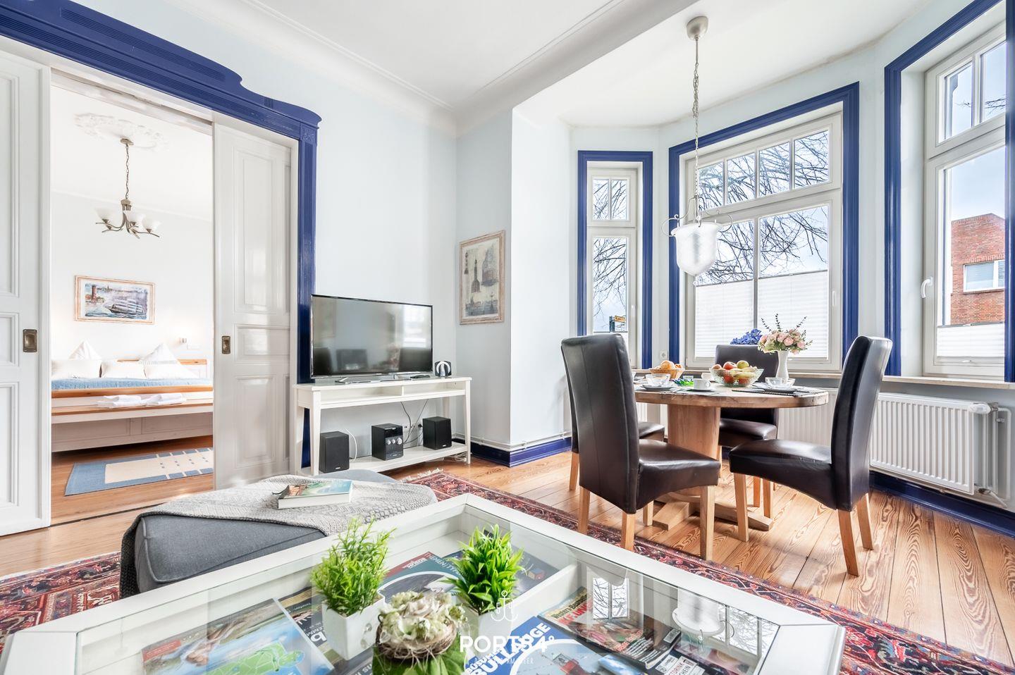 Willkommen in der "Villa Büsum Süderpiep" – einem charmanten Rückzugsort an der Nordseeküste, der Ihnen eine komfortable und stilvolle Unterkunft bietet. Mit 100m² Wohnfläche und einer durchdachten Inneneinrichtung erwartet Sie ein erholsames Urlaubserlebnis. Die Villa verfügt über zwei geschmackvoll eingerichtete Schlafzimmer. In Schlafzimmer 1 erwartet Sie ein gemütliches Doppelbett, ein Fernseher sowie eine geräumige Kommode. Im zweiten Schlafzimmer erwartet Sie ein weiteres Doppelbett und ein großer Kleiderschrank, der ausreichend Platz für Ihre Garderobe bietet. Der Wohnbereich besticht durch eine einladende Atmosphäre mit zwei komfortablen Sofas und einem weiteren Fernseher für gemütliche Abende. Hohe Decken verleihen dem Raum Großzügigkeit, während der Dielen Holzboden eine warme Note hinzufügt. Der Esstisch lädt zu gemeinsamen Mahlzeiten und geselligen Stunden ein. Die voll ausgestattete Küche lässt keine Wünsche offen. Neben einer geschlossenen Raumaufteilung finden Sie hier eine Filterkaffeemaschine, Mikrowelle, Radio, Wasserkocher, Backofen und einen Kühlschrank vor. Genießen Sie die Möglichkeit, sich selbst zu versorgen und Ihre Lieblingsgerichte zuzubereiten. Das Badezimmer ist modern gestaltet und bietet eine erfrischende Dusche, ein WC und ein Waschbecken. Hier können Sie sich nach einem erlebnisreichen Tag entspannen und erfrischen. Die Villa verfügt über WLAN, damit Sie mit Ihren Liebsten in Verbindung bleiben können. Die Terrasse mit Gartenzugang und einem einladenden Strandkorb lädt dazu ein, die frische Nordseeluft zu genießen und entspannte Stunden im Freien zu verbringen.