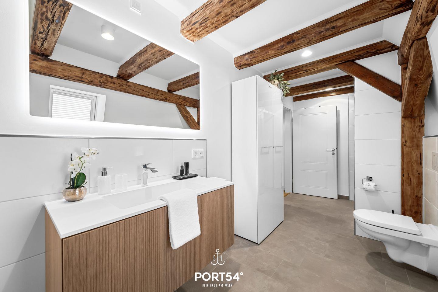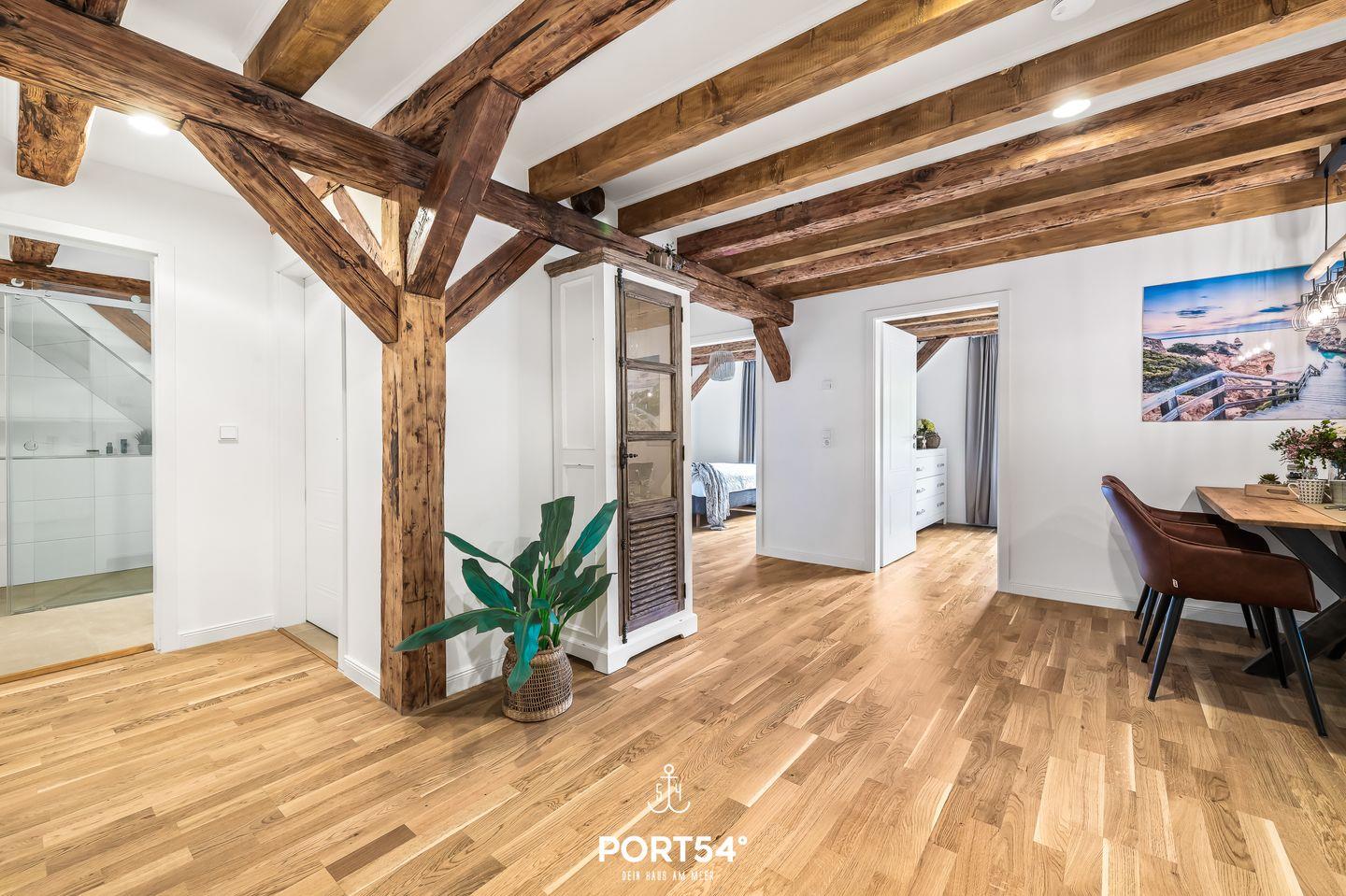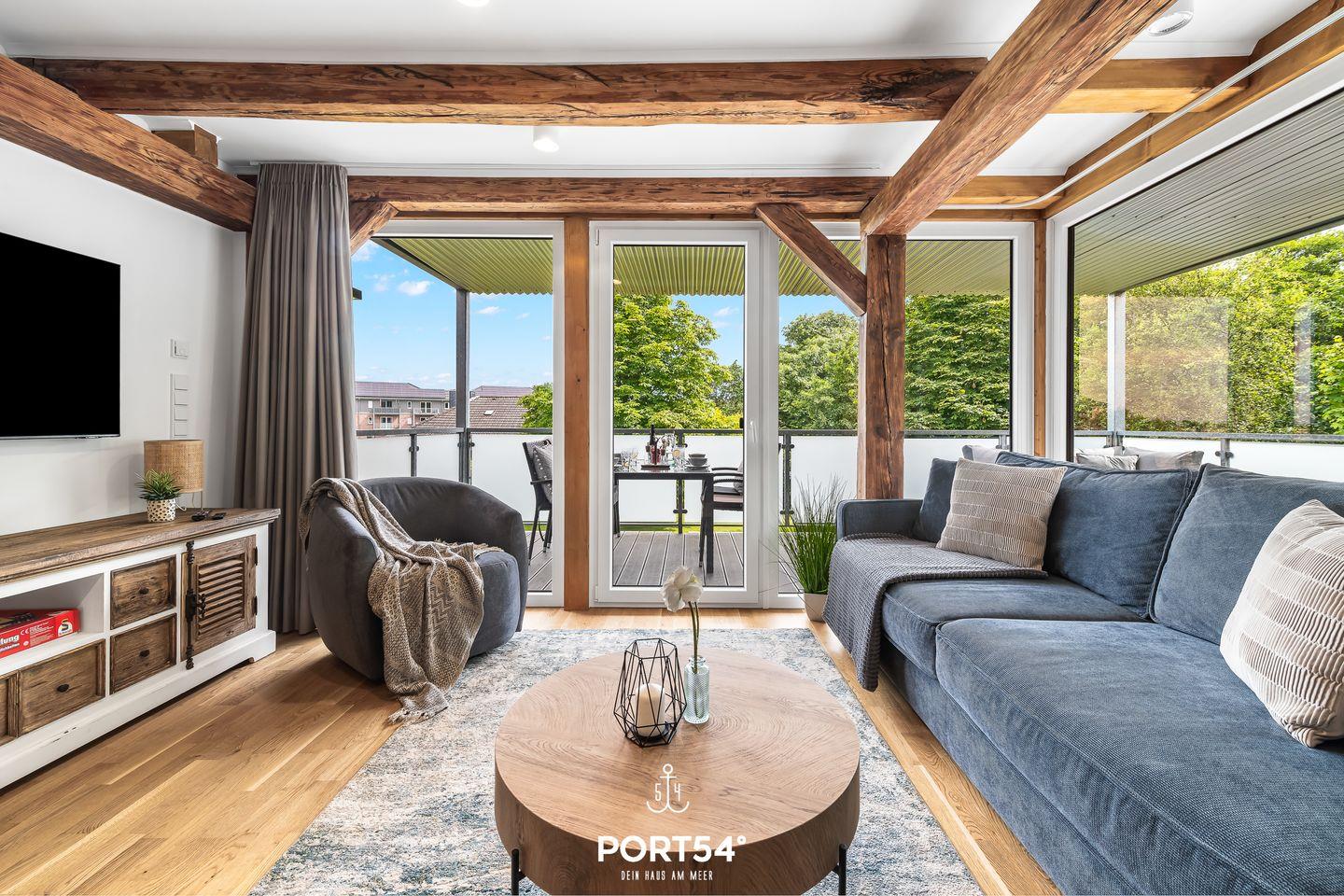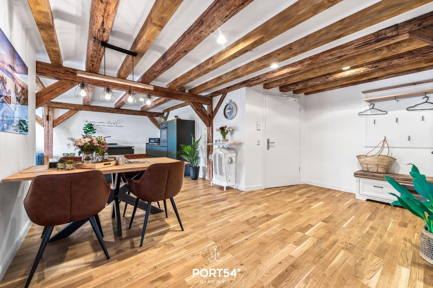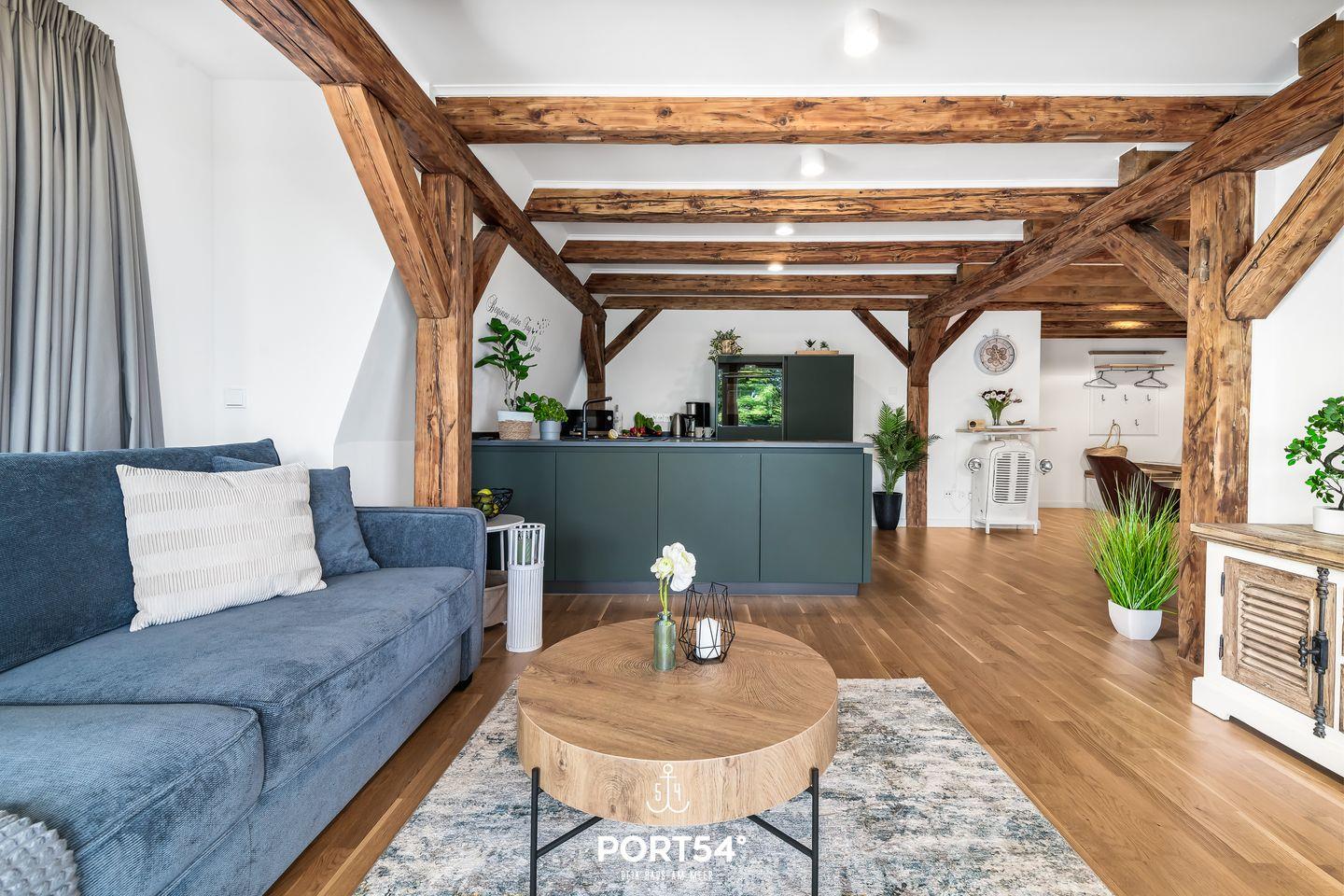 Die Wohnung ist liebevoll eingerichtet und verfügt über eine offene Küche, die mit hochwertigen Geräten ausgestattet ist. Hier können Sie gemeinsam kochen und Ihre kulinarischen Köstlichkeiten zubereiten, während der Essbereich für gesellige Abende einlädt. Genießen Sie die Zeit auch auf dem großen Balkon wo Sie die frische Meeresluft und die ländliche Idylle genießen können.