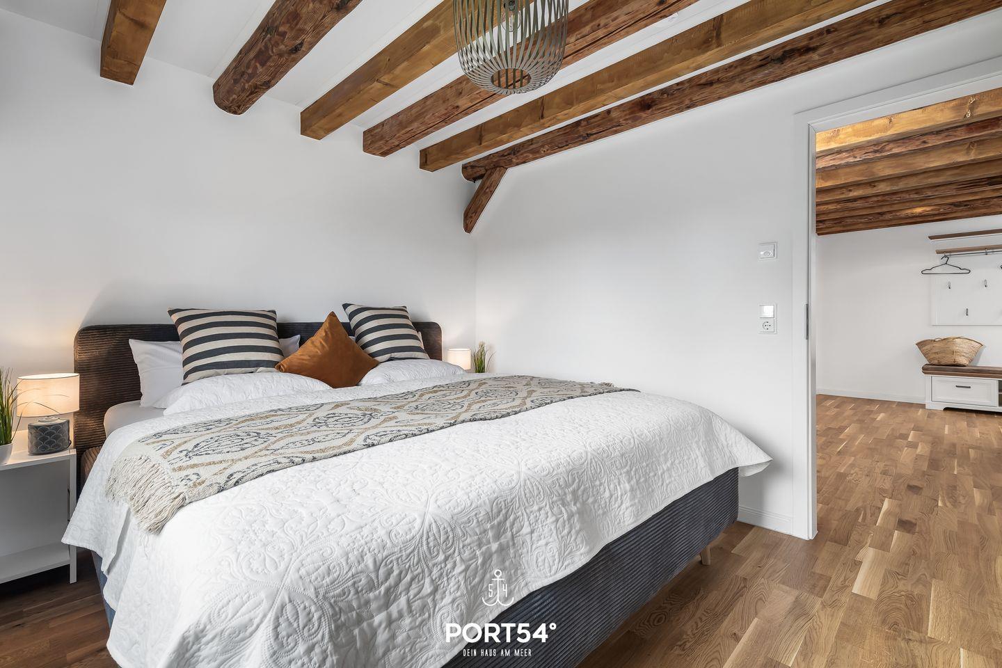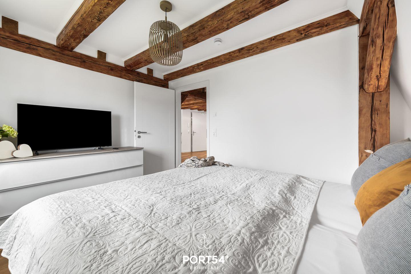 Die geschmackvoll gestalteten Schlafzimmer der Wohnung sind mit hochwertigen Betten (160x200m und 180x200m) ausgestattet und bieten Verdunklungsmöglichkeiten für eine erholsame Nachtruhe. Die Fenster sind mit Insektenschutzgittern ausgestattet. Ein komfortables Sofa mit Schlafmöglichkeit (160mx200m) bietet Platz für 2 weitere Gäste.