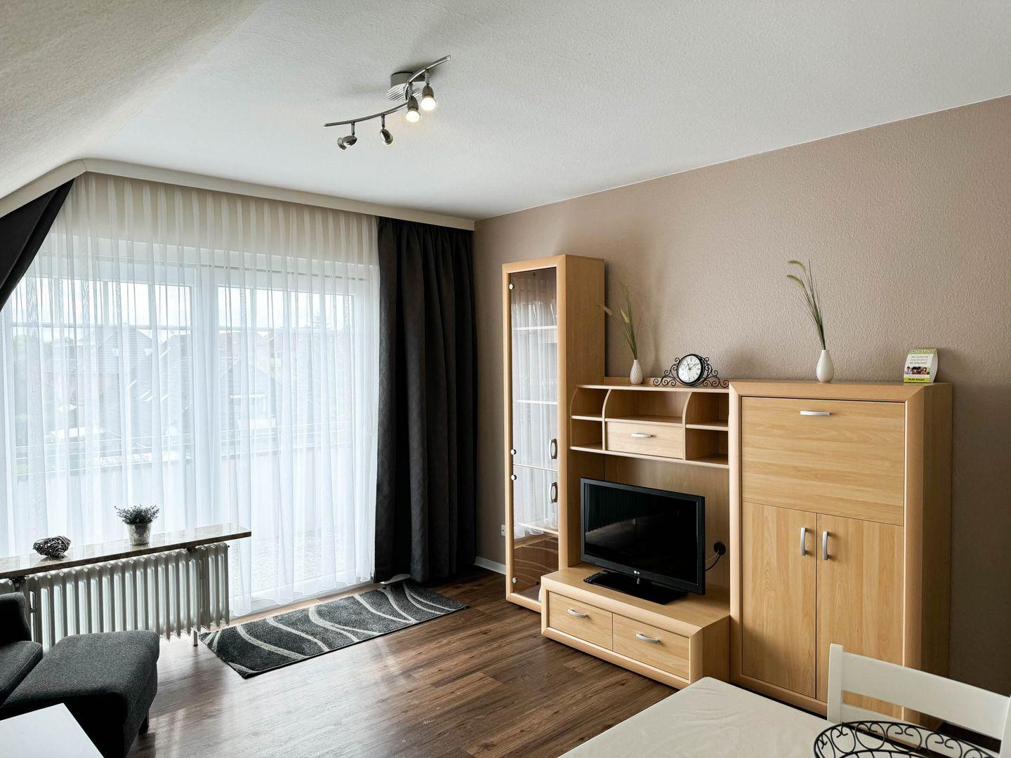 1 Wohnzimmer mit Essbereich, eine kleine Küchenzeile, 1 Schlafzimmer und 1 Duschbad
