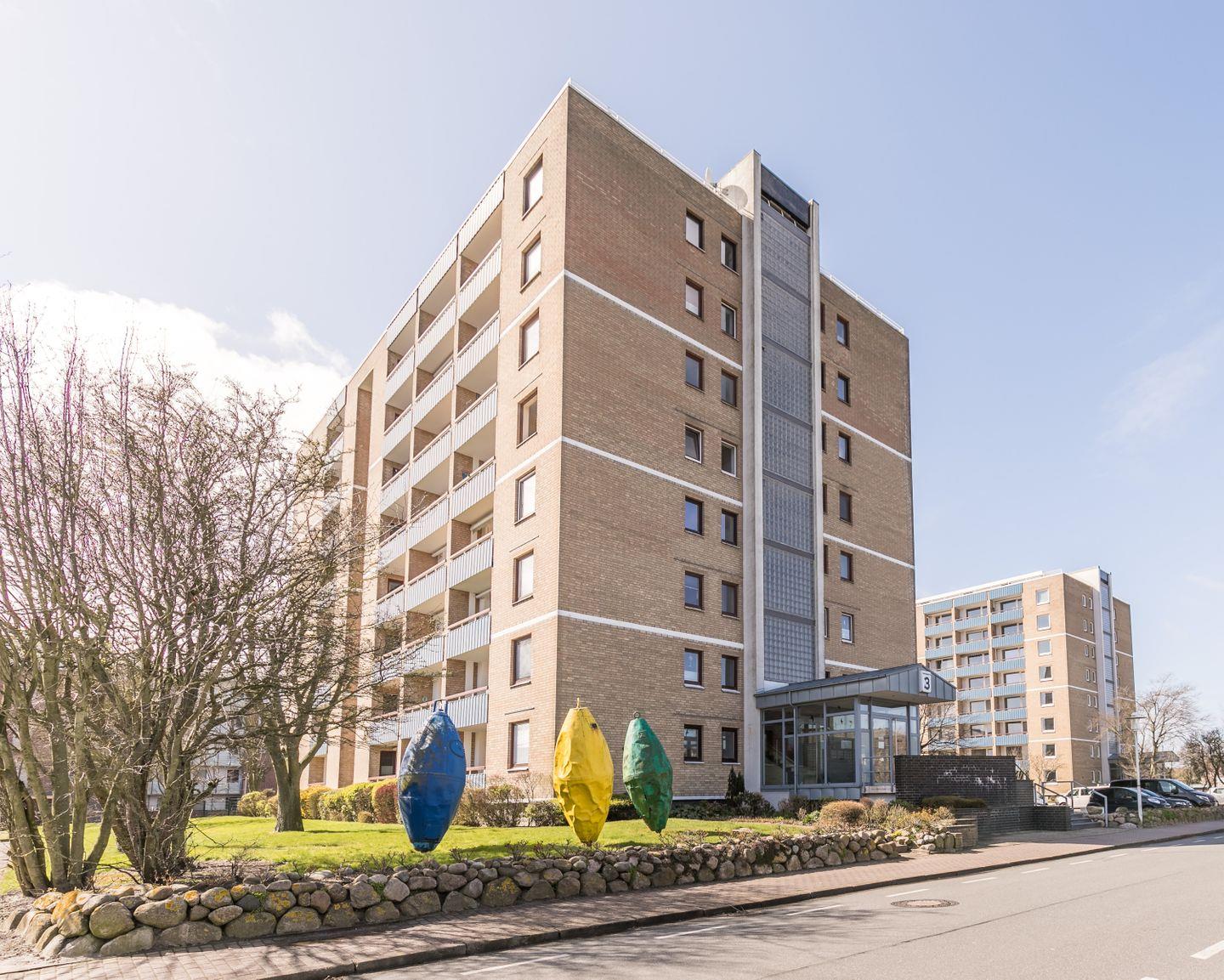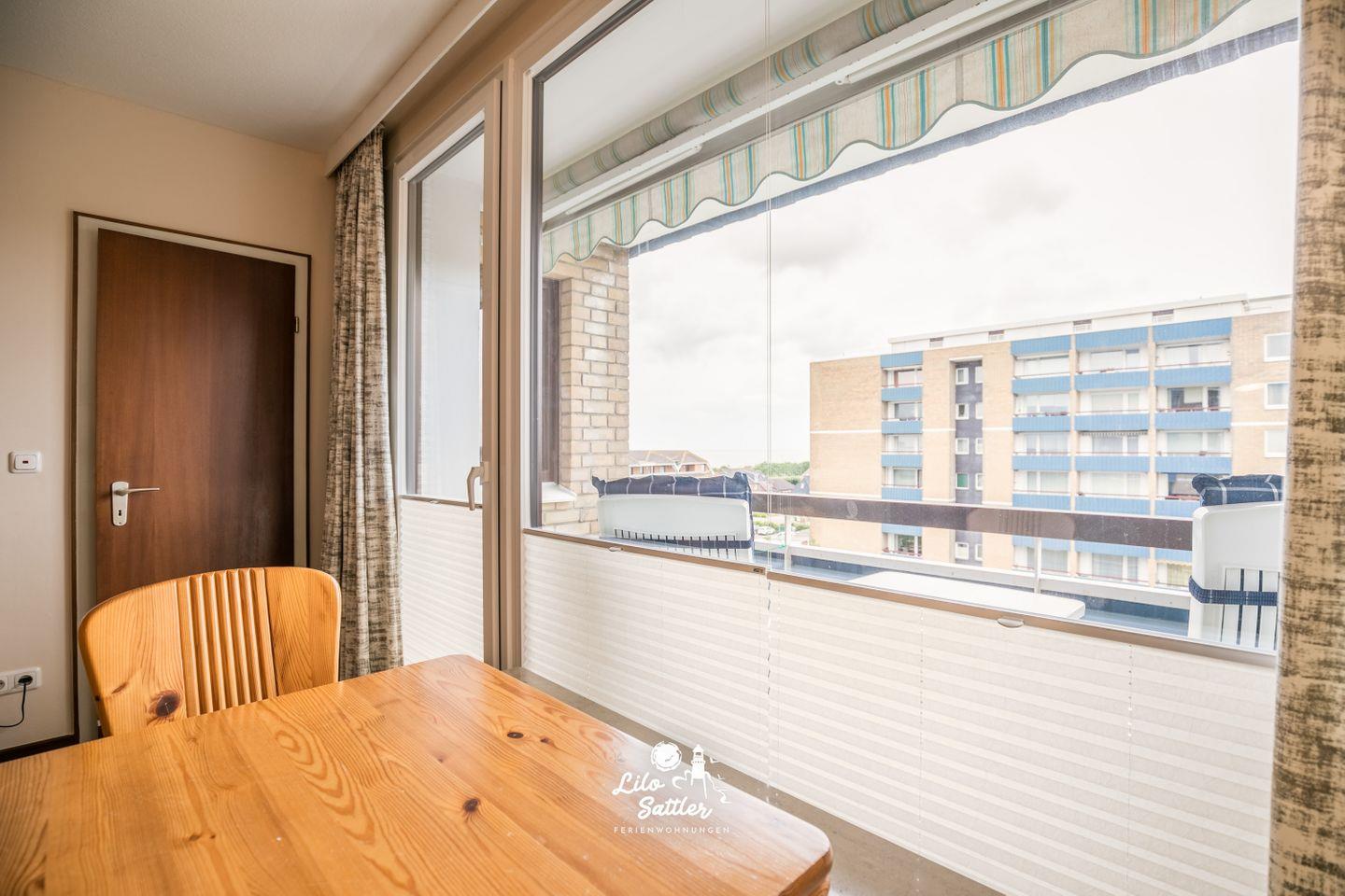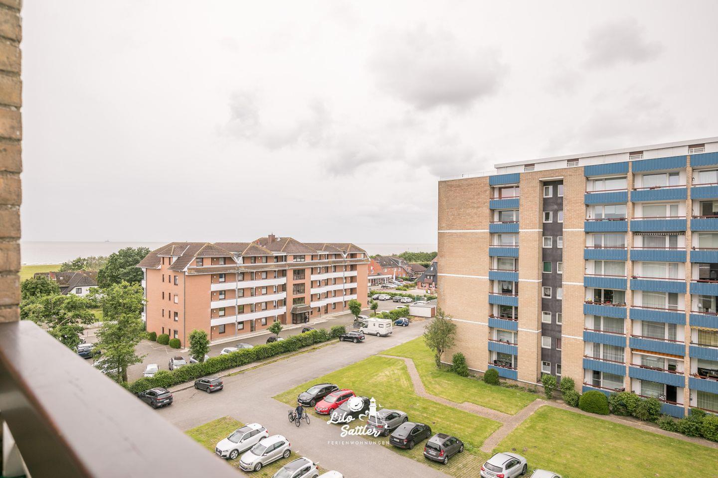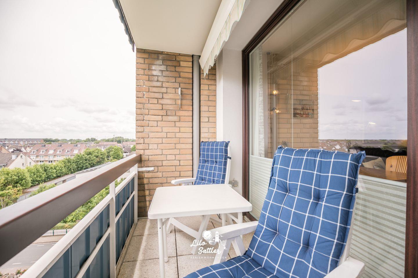 Möblierter Balkon, Markise, Fahrstuhl, 5. Obergeschoss, eingeschränkter Meerblick, Garderobe, Wechselsprechanlage, Münz- Waschraum, Tischtennisraum, Fahrradabstellraum, 1 kostenfreier Parkplatz, barrierefreier Zugang zum Haus, Bettwäsche und Handtücher optional dazu buchbar, keine Haustiere