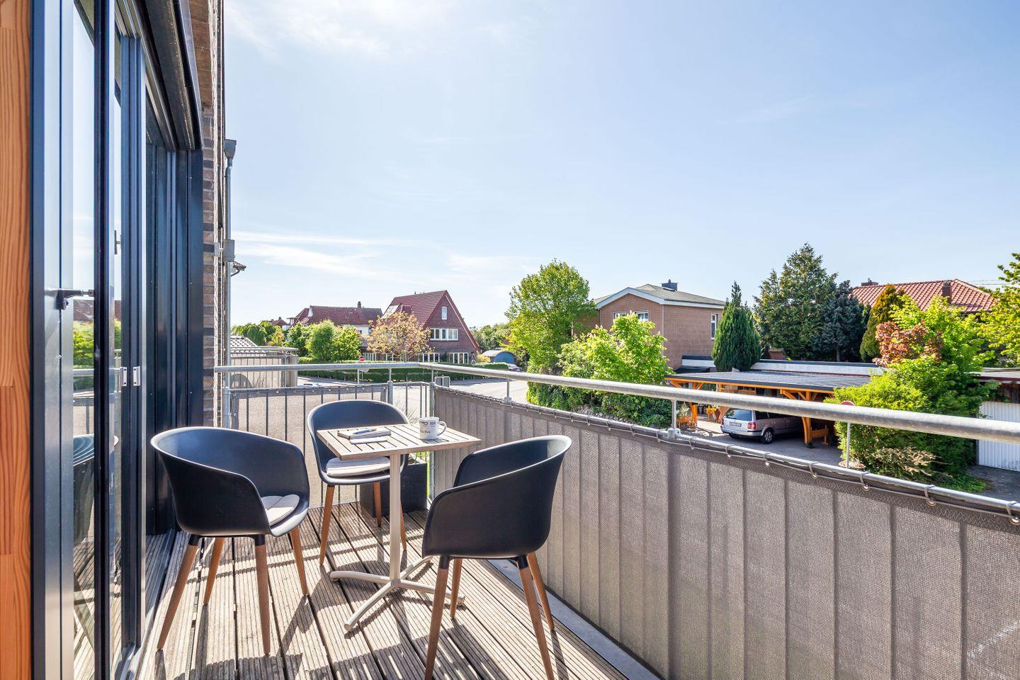 Der helle Wohnbereich öffnet sich zum Balkon; hier beginnt der Tag mit Nordseeluft und endet beim entspannten Sundowner. Zwei Schlafzimmer mit TV bieten Rückzugsorte, das Duschbad mit ebenerdiger Dusche und Fußbodenheizung sorgt für einen angenehmen Start in den Tag.