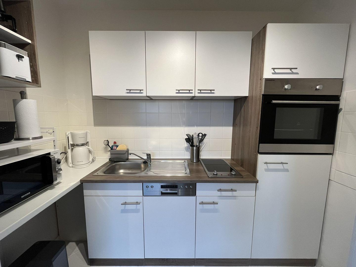 In dem gut ausgestatteten Küchenbereich des Wohnraumes, der mit Geschirrspüler, Herd, Backofen, etc. komplett eingerichtet ist, können Sie sich bequem mit Leckereien aus der Region versorgen. Ein Esstisch ist selbstverständlich vorhanden.
