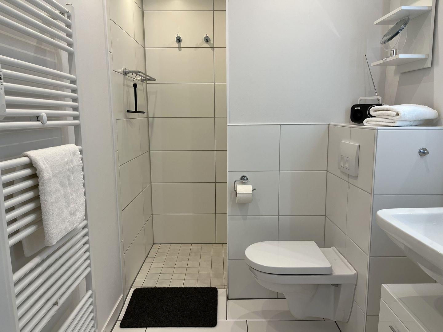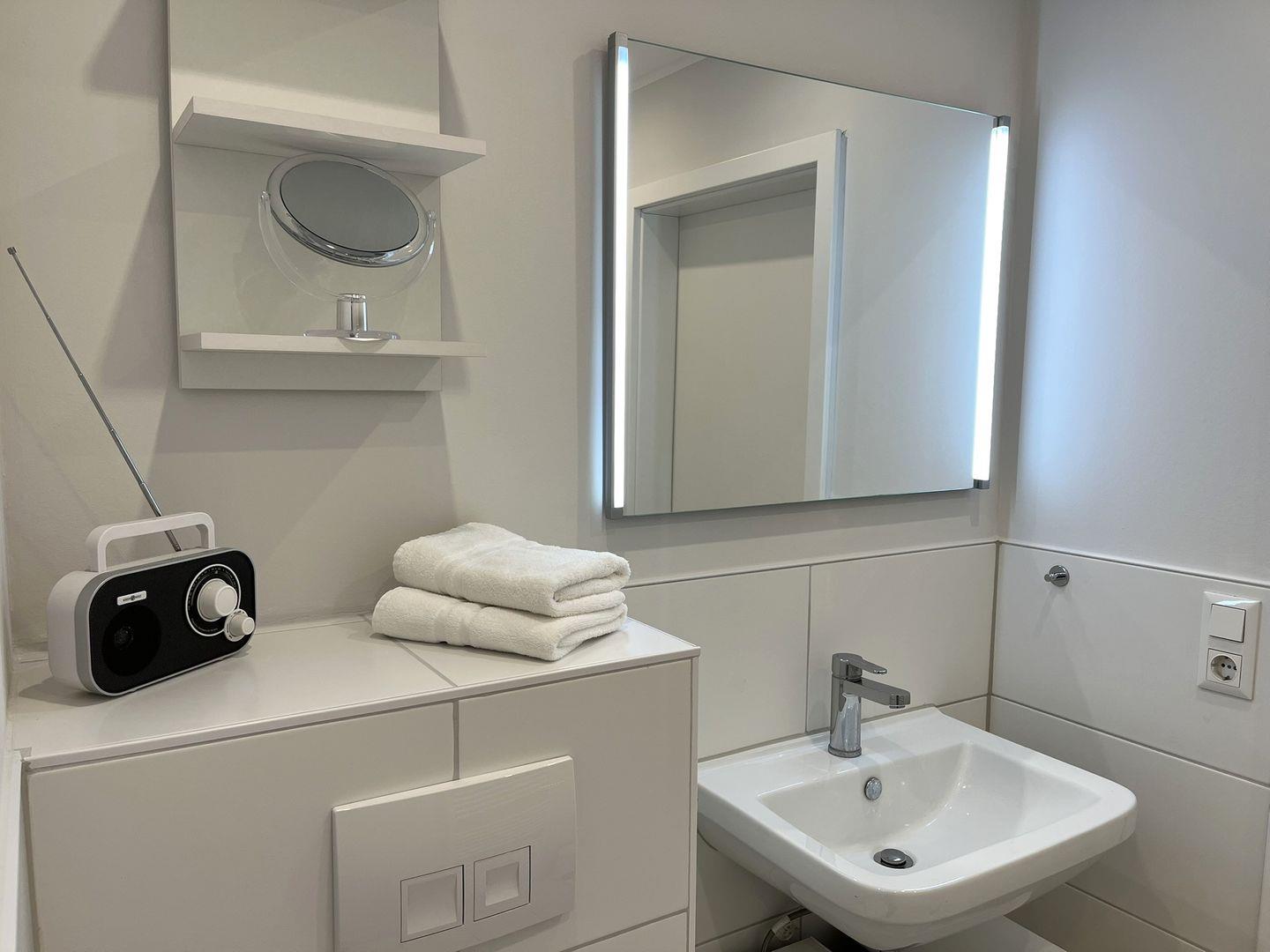 Ein modernes Bad mit Dusche (ebenerdiger Einstieg) und einem Handtuchwärmer rundet diese Wohnung perfekt ab.