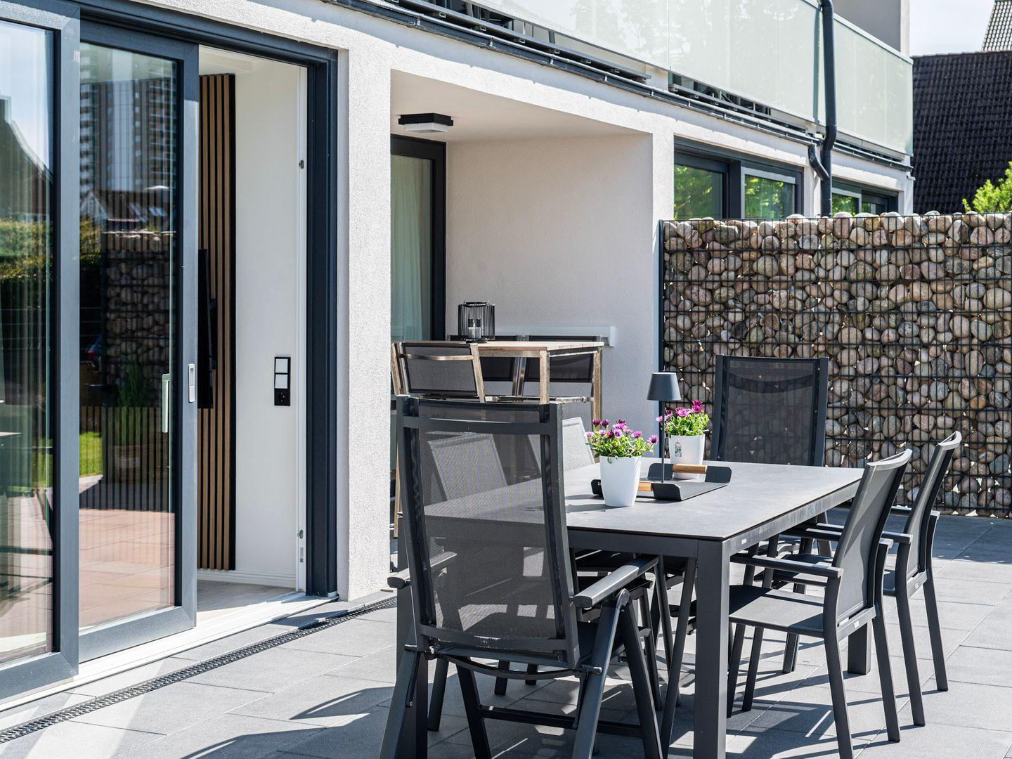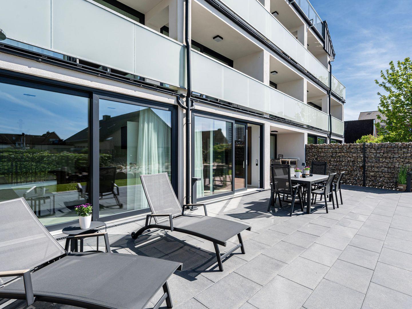 Inseltörn Wohnung 1 – Terrasse, Außendusche & Eintritt ins Schwimmbad inklusive