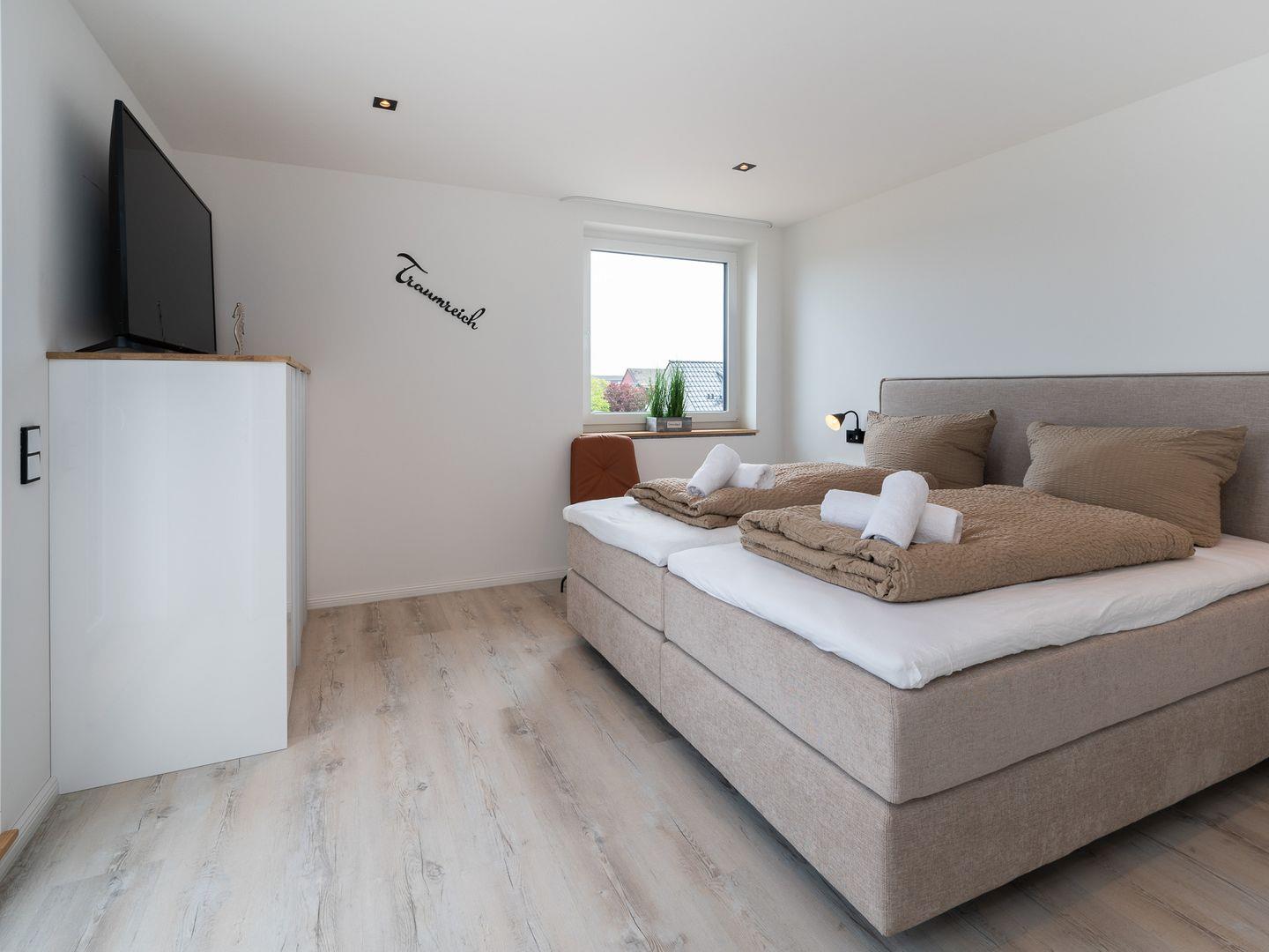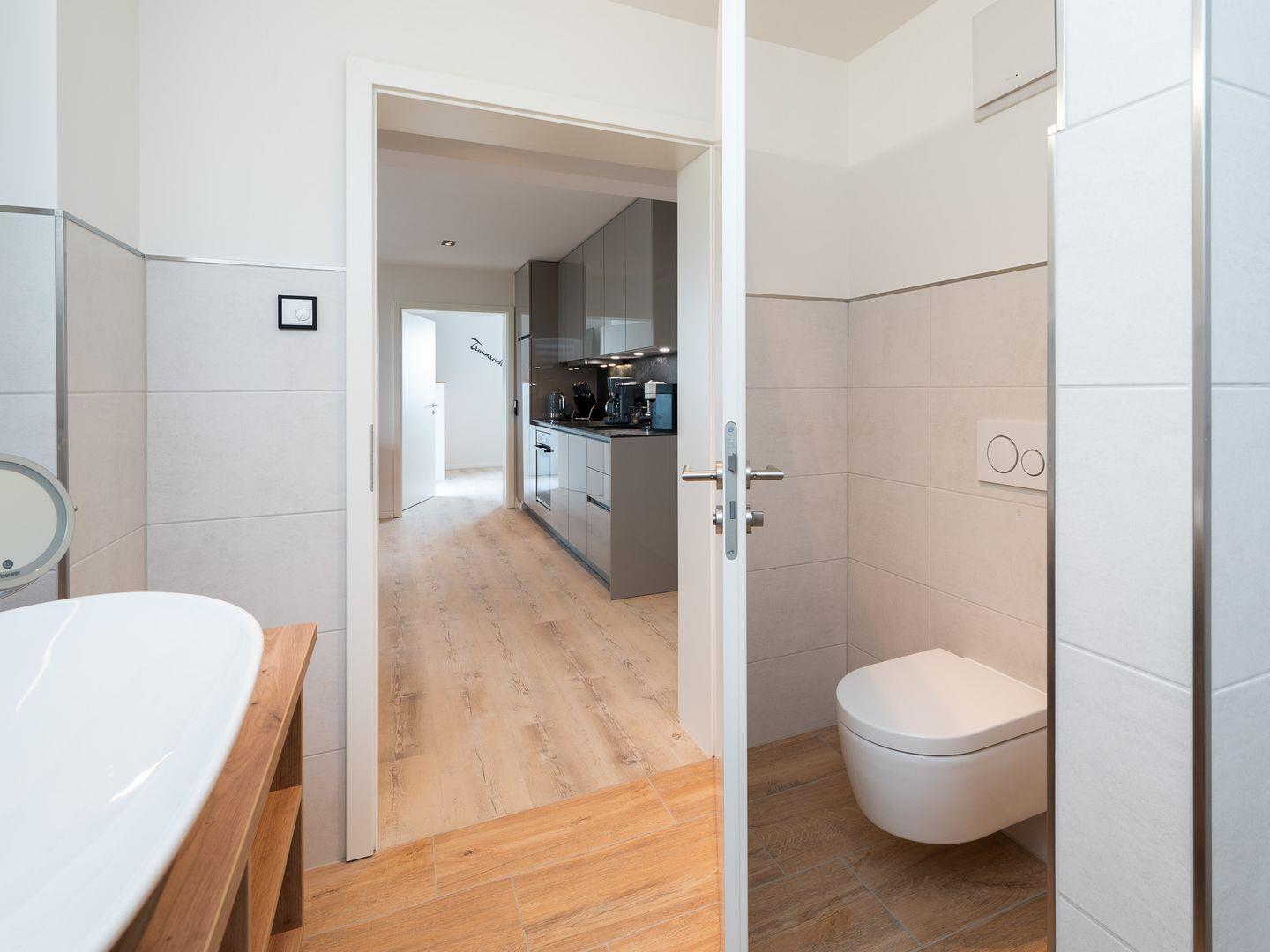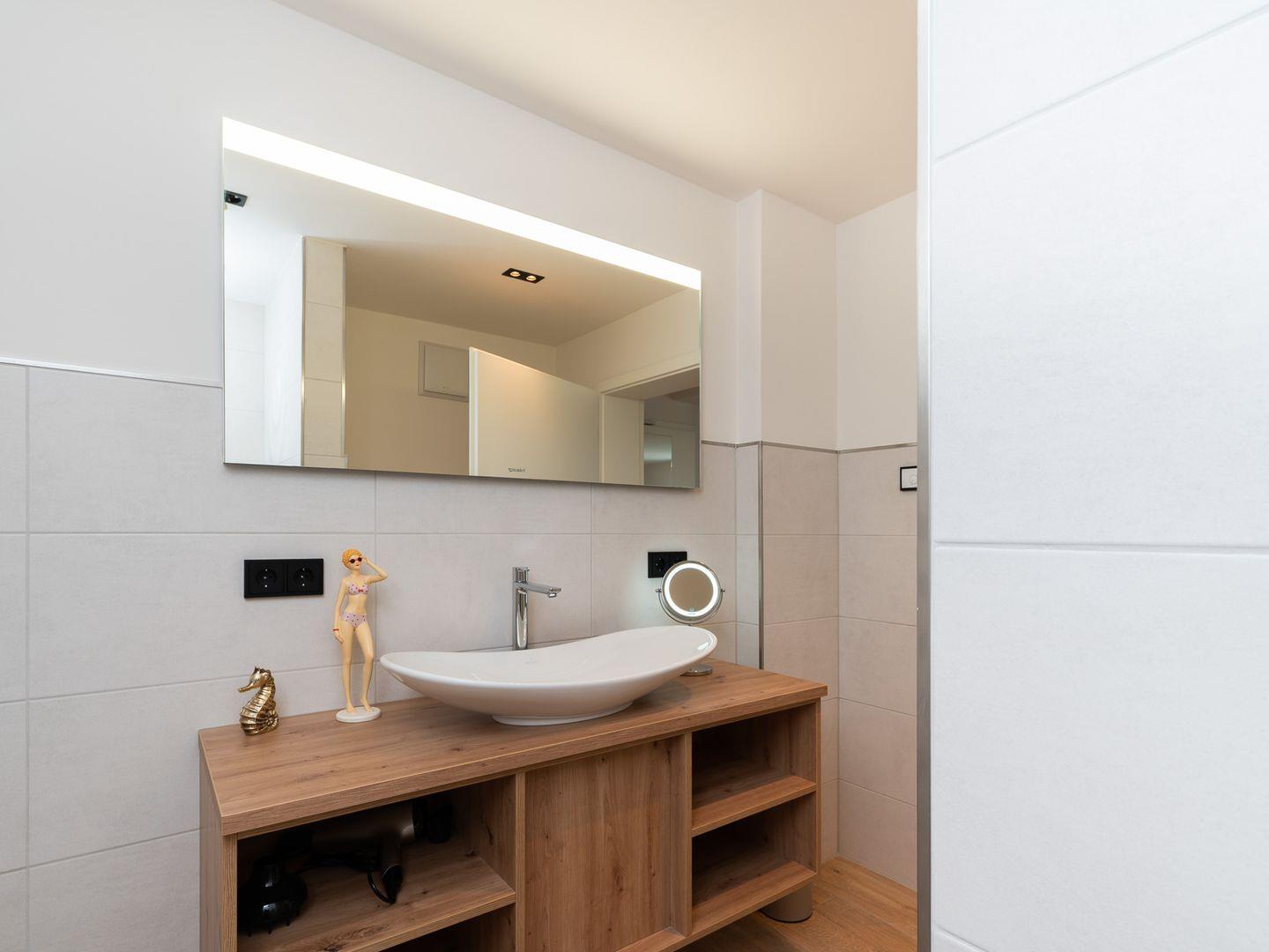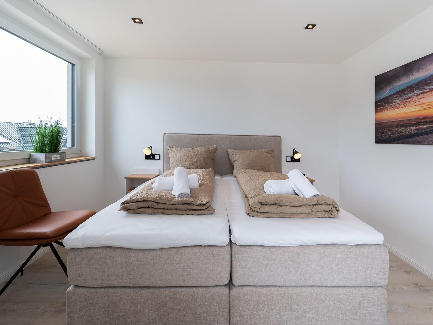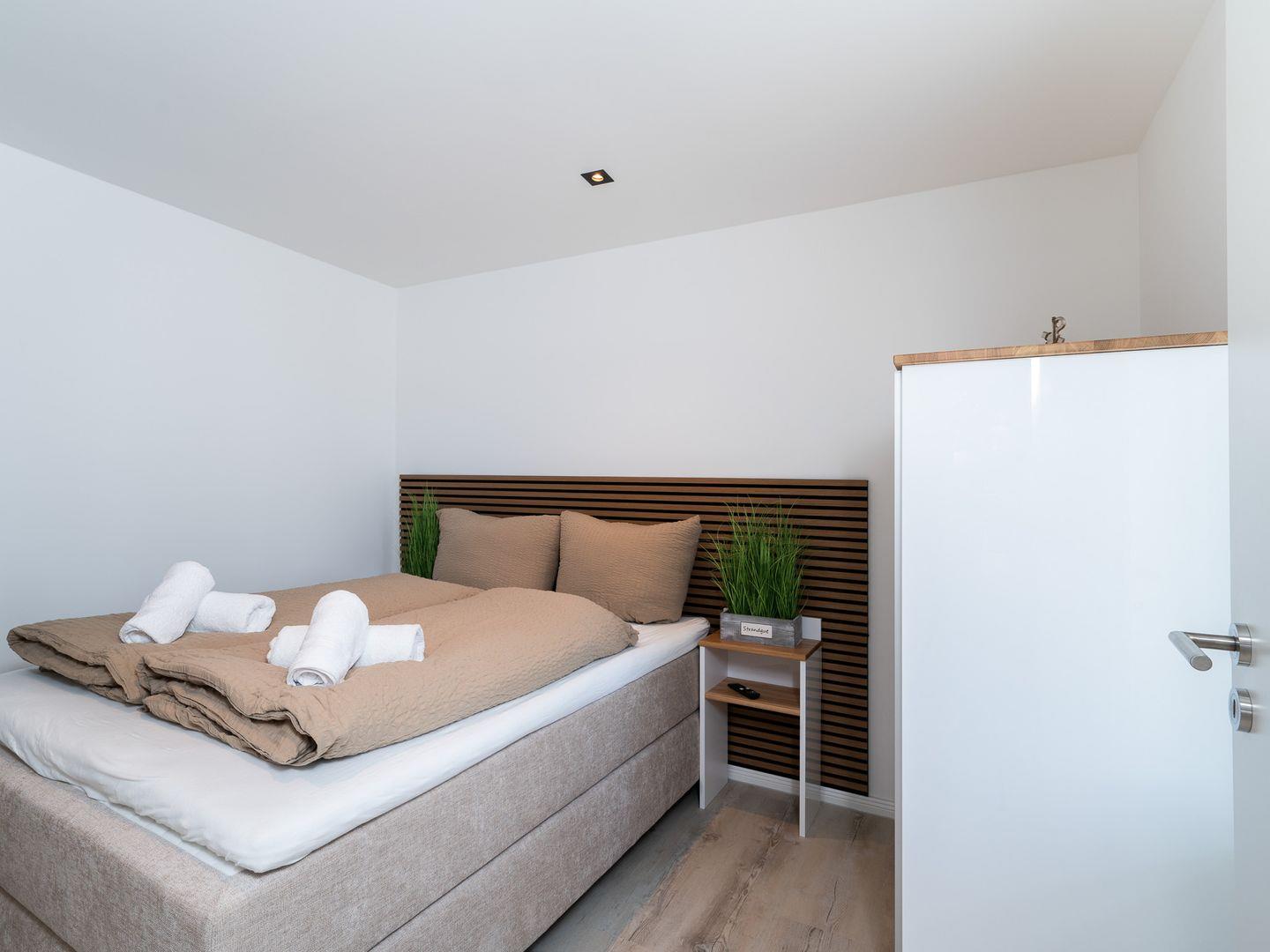 Die Wohnung verfügt über zwei komfortable Schlafzimmer, die jeweils mit bequemen Betten ausgestattet sind und ein ruhiges Ambiente bieten. Außerdem steht ein modernes Badezimmer mit bodengleicher Dusche, WC und Waschbecken zur Verfügung. Die Wohnung ist auch für Allergiker geeignet.