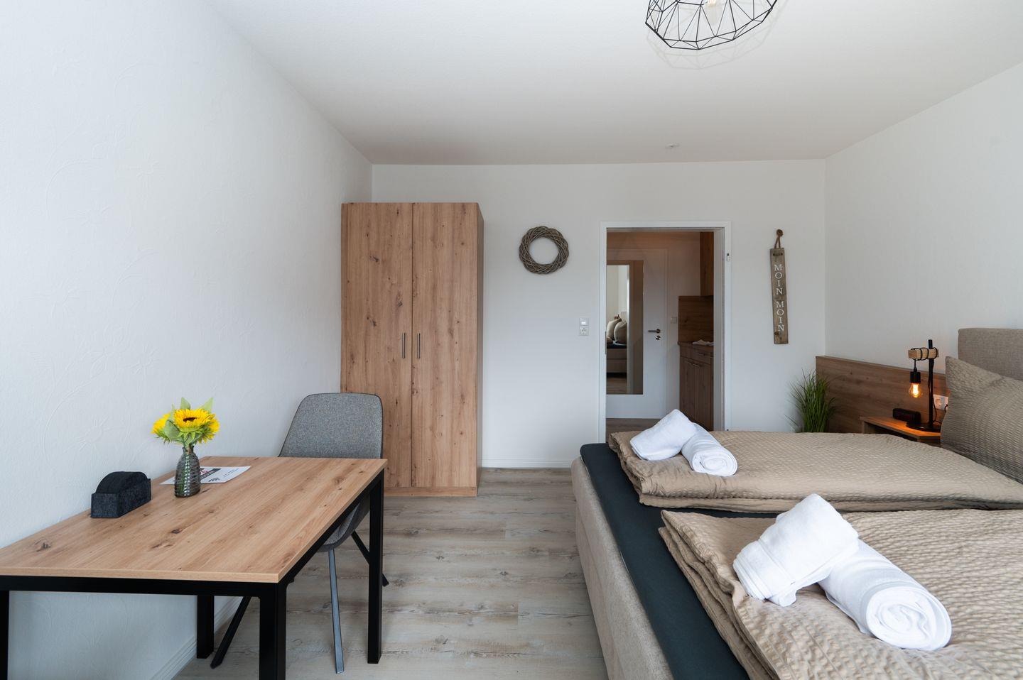 Die Wohneinheit ist geschmackvoll eingerichtet und verfügt über einen Fernseher sowie WLAN-Internet, damit Sie jederzeit in Kontakt bleiben oder entspannen können. Gelegen auf einer eigenen Terrasse, können Sie die frische Nordseeluft genießen und abends bei einem Glas Wein den Tag ausklingen lassen. Gartenmöbel laden dazu ein, auch die schöne Außenfläche zu nutzen.
