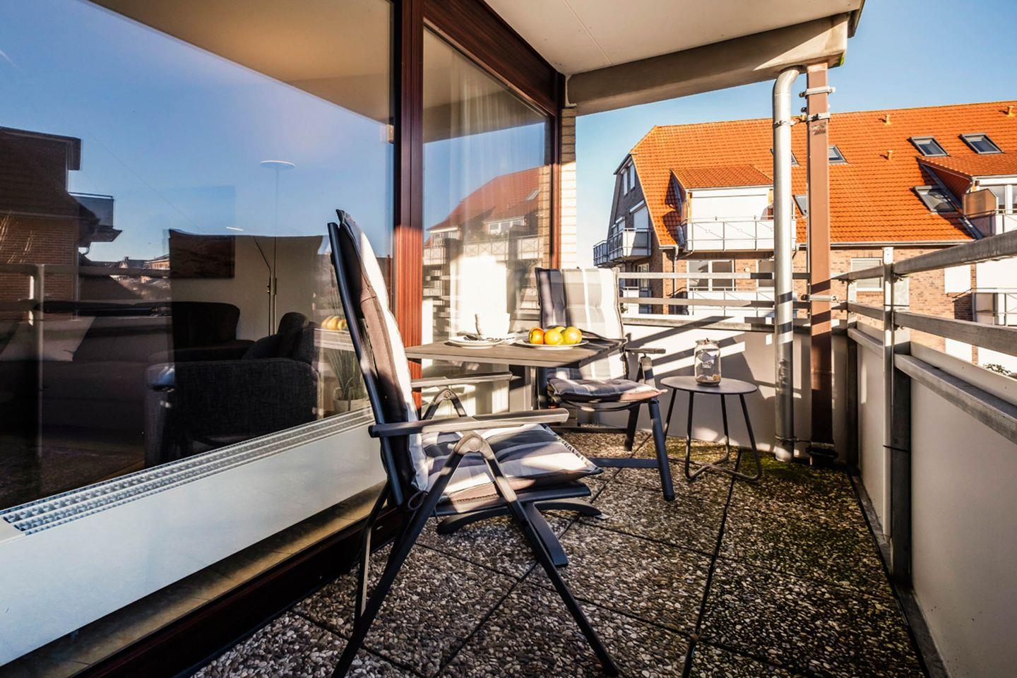 Zu der Wohnung gehört auch ein Balkon – der perfekte Ort, um den Tag bei einer Tasse Kaffee oder einem Glas Wein ausklingen zu lassen.