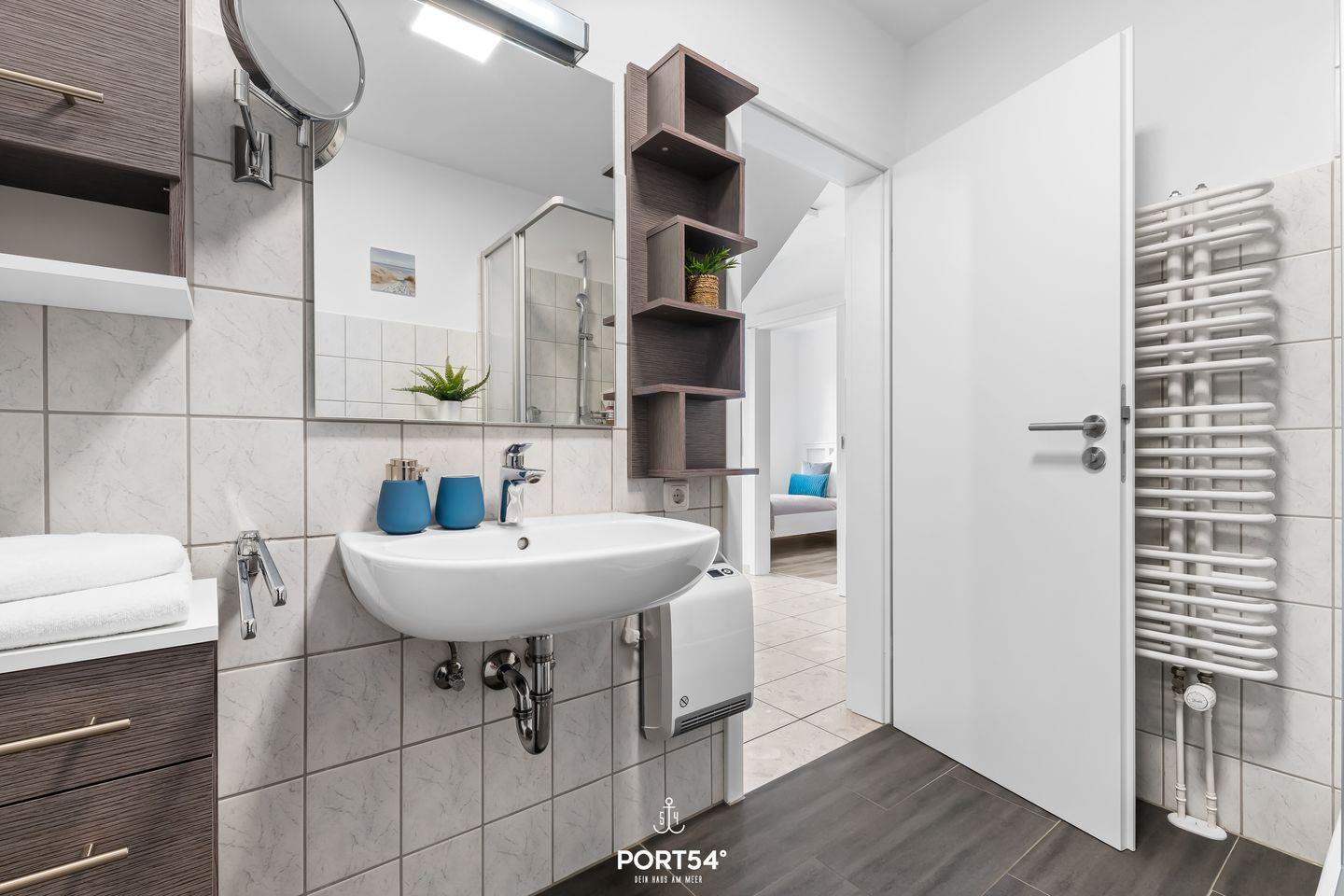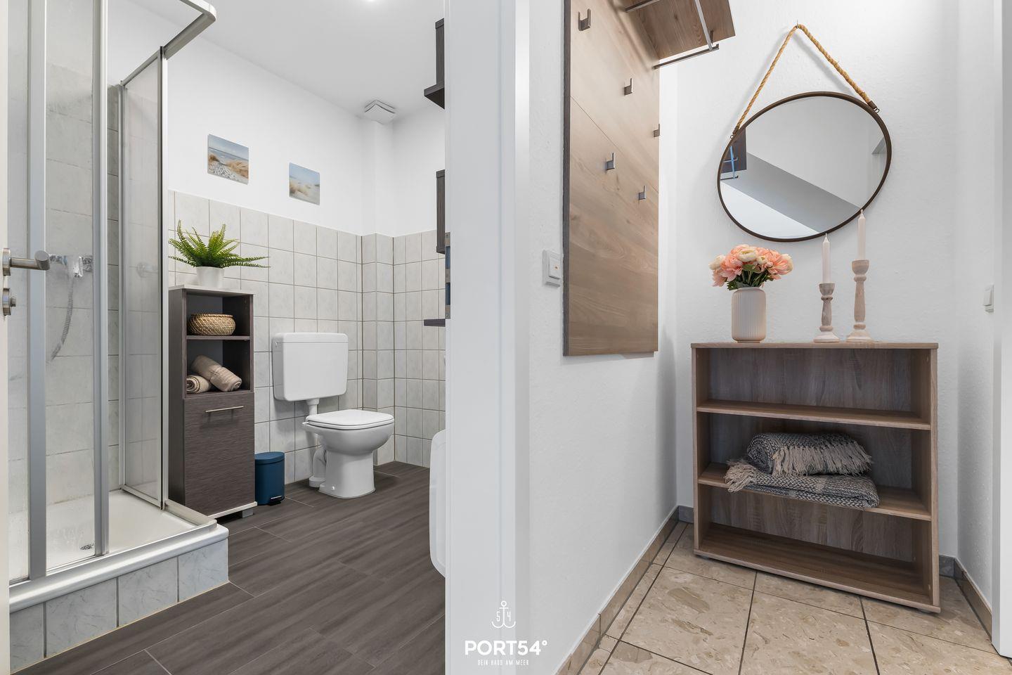 Das moderne Badezimmer ist mit Dusche, Haartrockner und Kosmetikspiegel ausgestattet – perfekt, um dich nach einem Strandtag oder einer Radtour zu erfrischen. Die gesamte Wohnung ist rauchfrei und dank Sichtschutz an allen Fenstern angenehm privat.