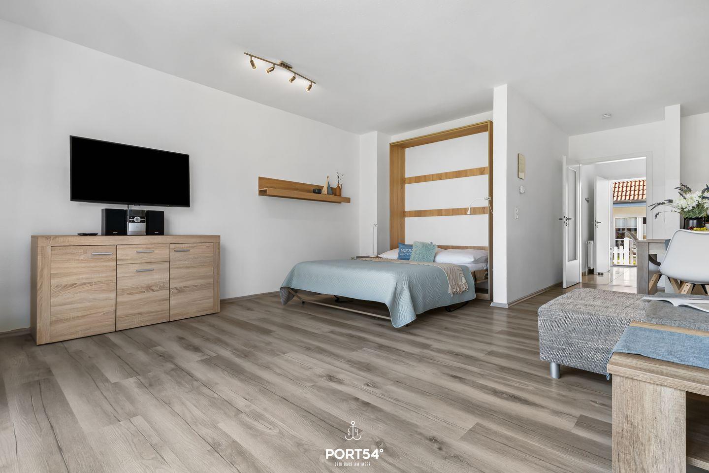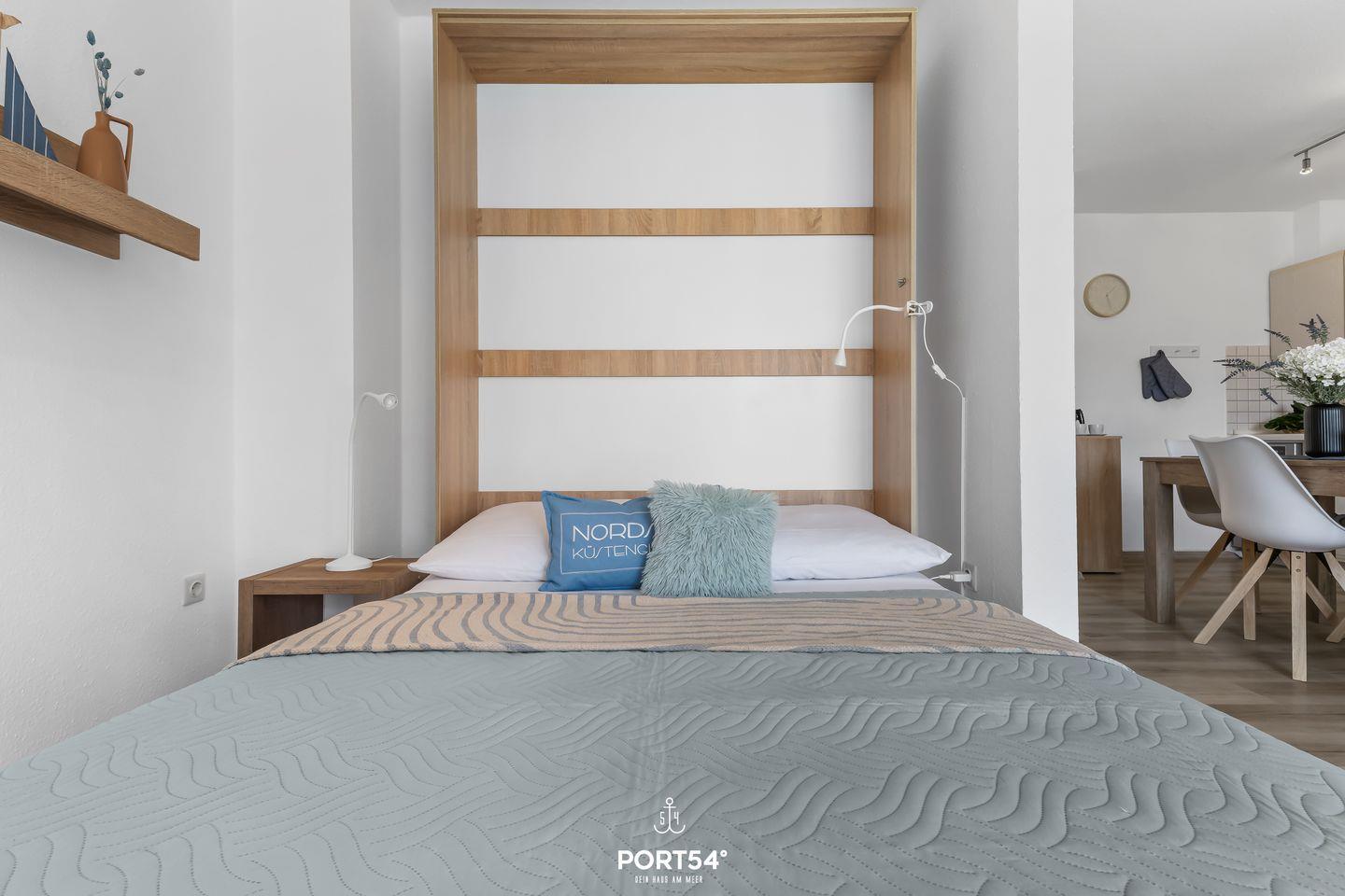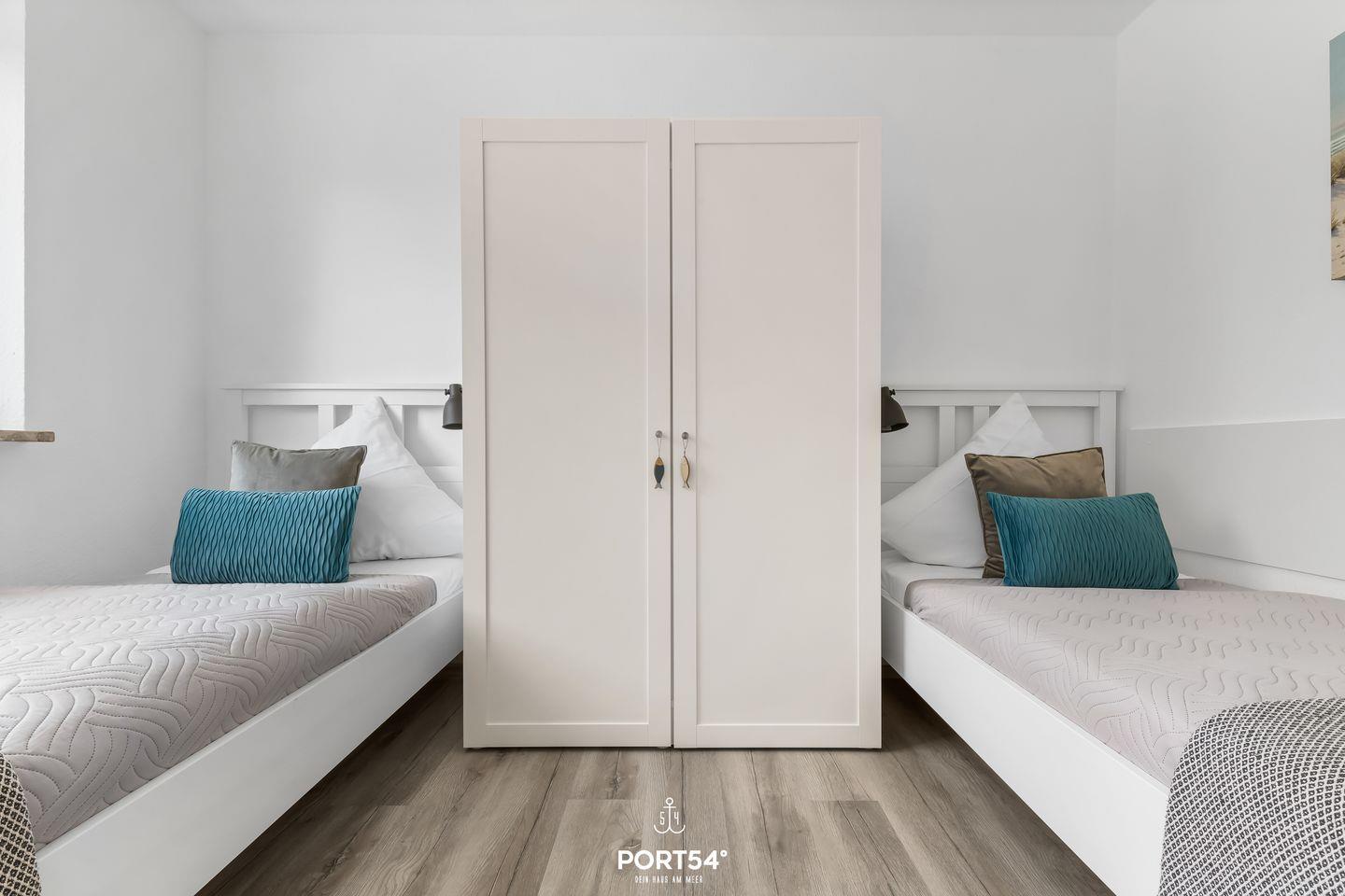 Die Ferienwohnung verfügt über ein gemütliches Schlafzimmer mit zwei Einzelbetten (je 90 × 200) sowie ein einladendes Wohnzimmer mit einem modernen Schrankbett (140 × 200). Der offene Grundriss mit angeschlossener, vollständig ausgestatteter Küche schafft eine angenehme Atmosphäre für gemeinsame Mahlzeiten und entspannte Abende. WLAN sorgt für eine stabile Verbindung – ideal zum Streamen, Planen oder um in Kontakt zu bleiben.