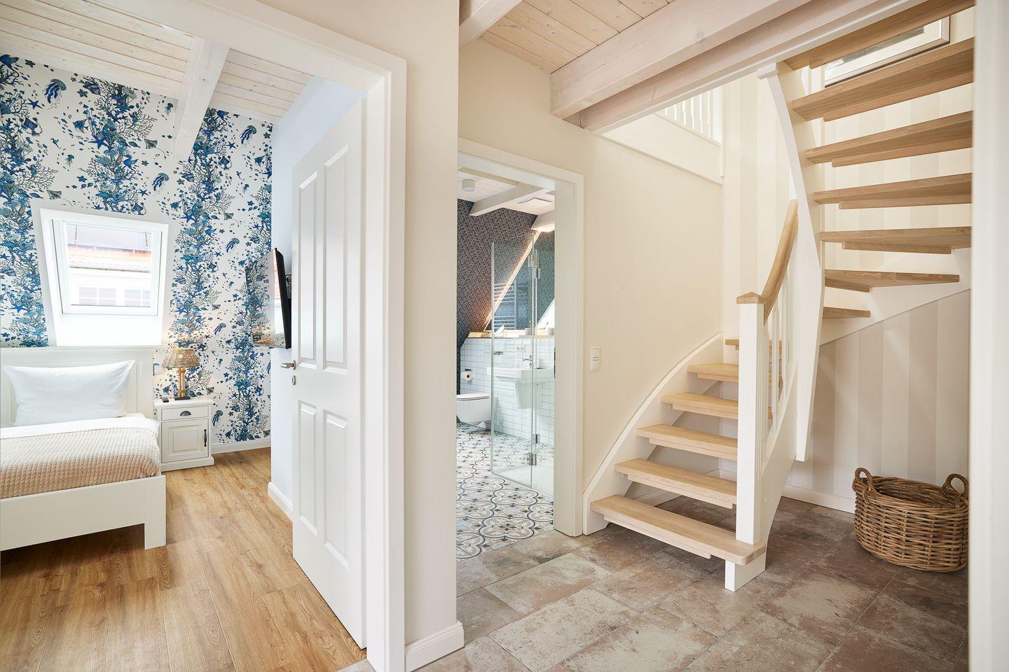 Neben dem Schlafzimmer bietet die offene Galerie zwei weitere Schlafgelegenheiten mit einem besonderen Ambiente. Ein weiteres Highlight ist das Cabriofenster mit Austritt.