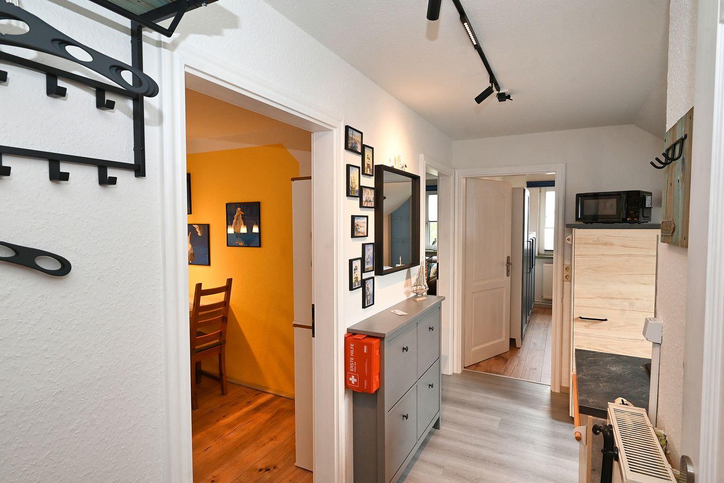 Mit insgesamt vier Zimmern, darunter zwei separate Schlafzimmer und ein Wohnzimmer, sowie ein separates Esszimmer, finden bis zu drei Personen angenehme Schlafmöglichkeiten. Das Wohnzimmer lädt dank gemütlicher Sofaecke und besonderem Mobiliar zu entspannten Stunden ein. Drei Smart-TV Geräte mit Magenta TV, RTL+ und Sat-TV im Wohnzimmer sowie die Möglichkeit (mit dem eigen Account) weitere Streaming-Kanäle zu aktivieren , WLAN, Bücher und Spiele bieten Ihnen unterschiedliche Unterhaltungsmöglichkeiten für entspannte Abende.
