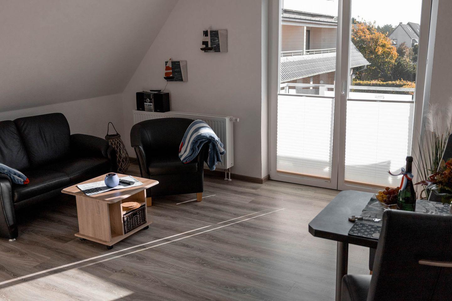 Das modern eingerichtete Apartment verfügt über zwei Zimmer, davon ein separates Schlafzimmer, das mit bequemen Schlafmöglichkeiten ausgestattet ist. Der helle und gemütliche Wohnbereich lädt mit einem Sofa und einem Sessel zum Entspannen ein. Zwei Fernseher sorgen für Unterhaltung und durch das vorhandene WLAN bleiben Sie stets mit dem Internet verbunden. Für angenehme Temperaturen in jeder Jahreszeit steht eine Heizung zur Verfügung.