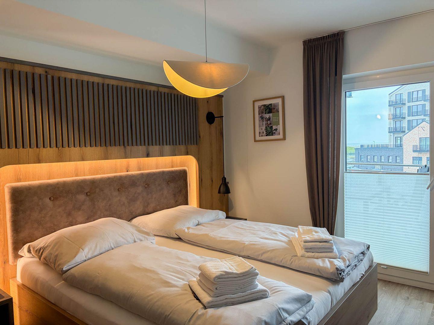 Der möblierte Balkon (inklusive Strandkorb) lädt dazu ein, den Blick auf das Meer, den Hafen oder die Schleuse zu genießen und die frische Nordseeluft zu erleben. Dank Sichtschutz an allen Fenstern bleibt Ihre Privatsphäre gewahrt. Neben kostenlosem WLAN bietet ein Parkplatz in der Garage hohe Flexibilität bei der Anreise. Die Nutzung der Waschmaschine und des Trockners ist kostenlos innerhalb der Wohnung möglich.