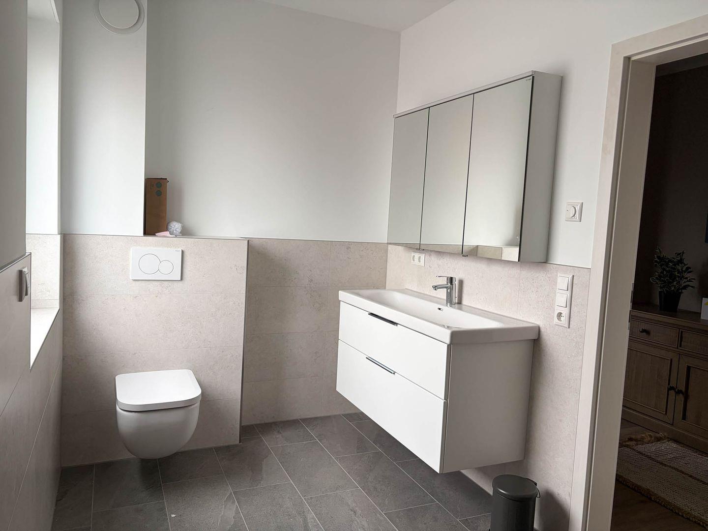 Die hochwertige Einrichtung spiegelt sich in jedem Detail wider: In der Wohnung finden Sie einen offenen Wohn- und Essbereich, eine stilvolle Sofaecke (Schlafsofa) auf Vinylboden sowie ein einladenden Essbereich mit Esstisch, offen zur modernen Küche gestaltet. Diese ist vollständig ausgestattet mit Ceranherd, Backofen, Mikrowelle, Spülmaschine, Kühlschrank und Gefrierfach, Kaffeemaschine, Toaster, Wasserkocher sowie sämtlichen Küchenutensilien, Geschirr und Besteck. Die Wohnung verfügt über ein Tageslichtbad mit bodengleicher Dusche.