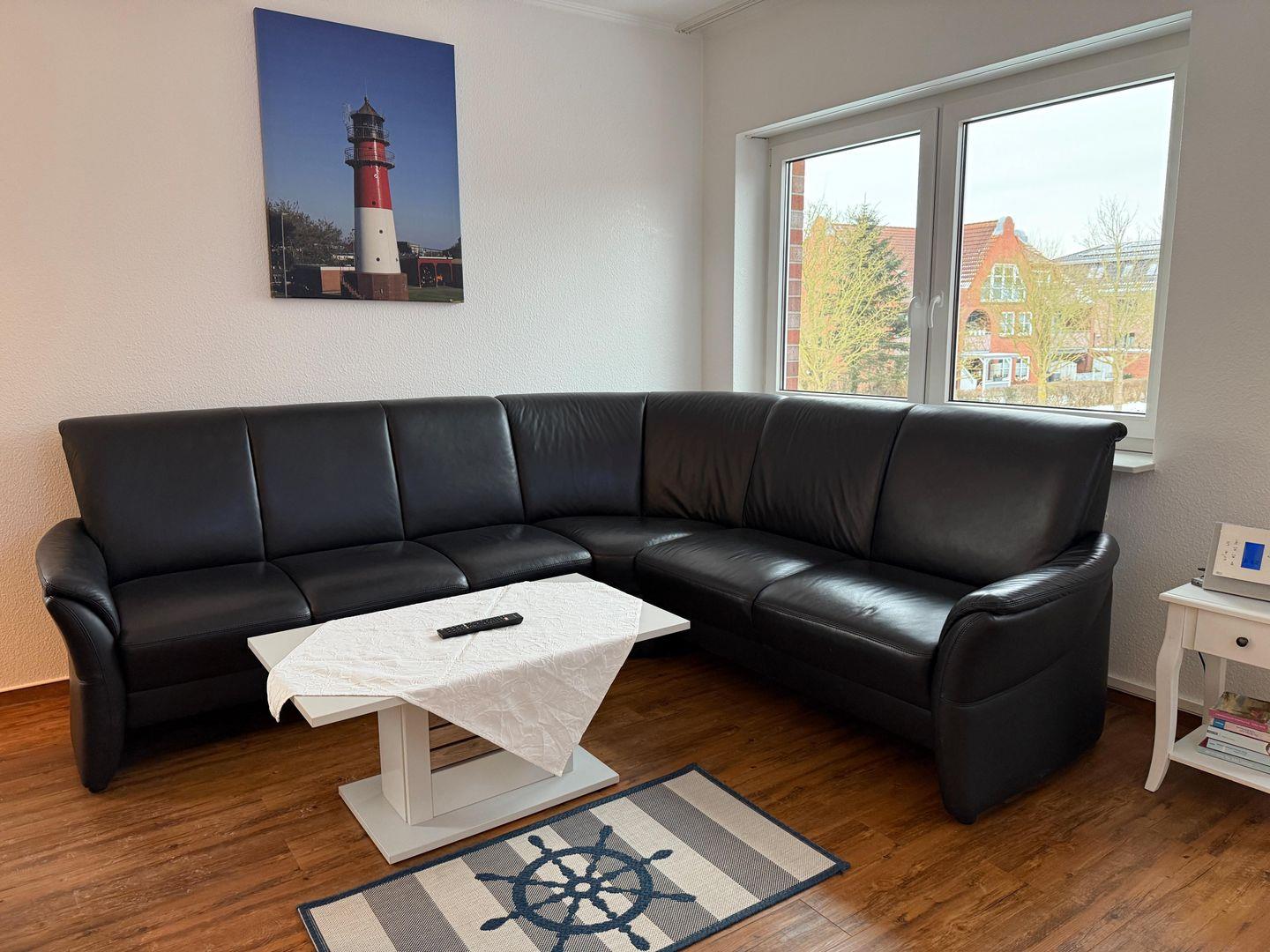 Das gemütliche Sofa lädt zum Entspannen ein.