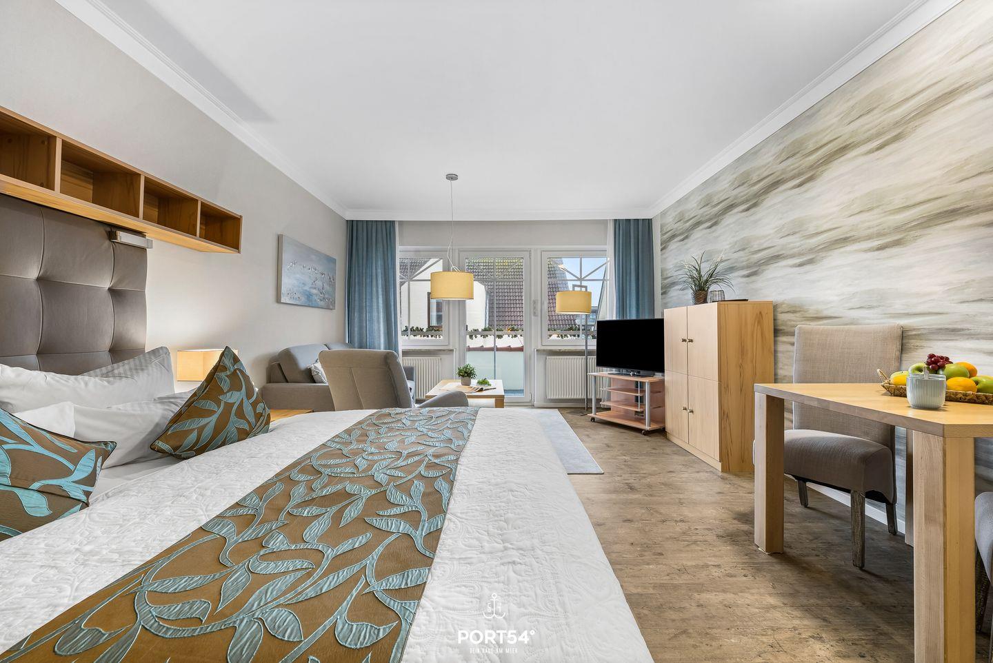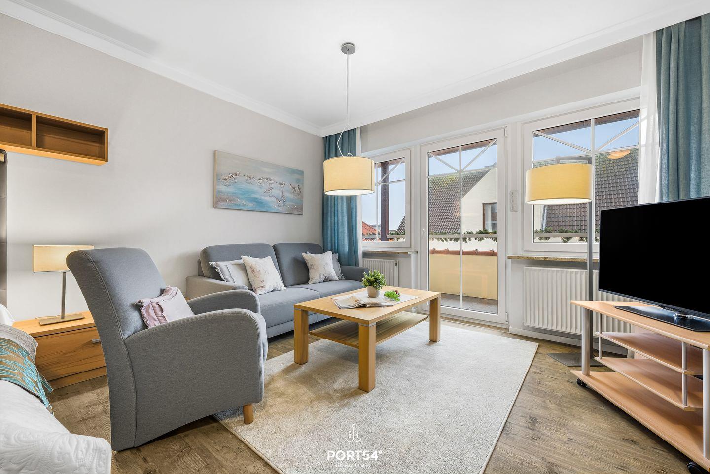Ein kleiner Balkon lädt dich dazu ein, frische Nordseeluft zu genießen und das Treiben der nahegelegenen Fußgängerzone zu beobachten.