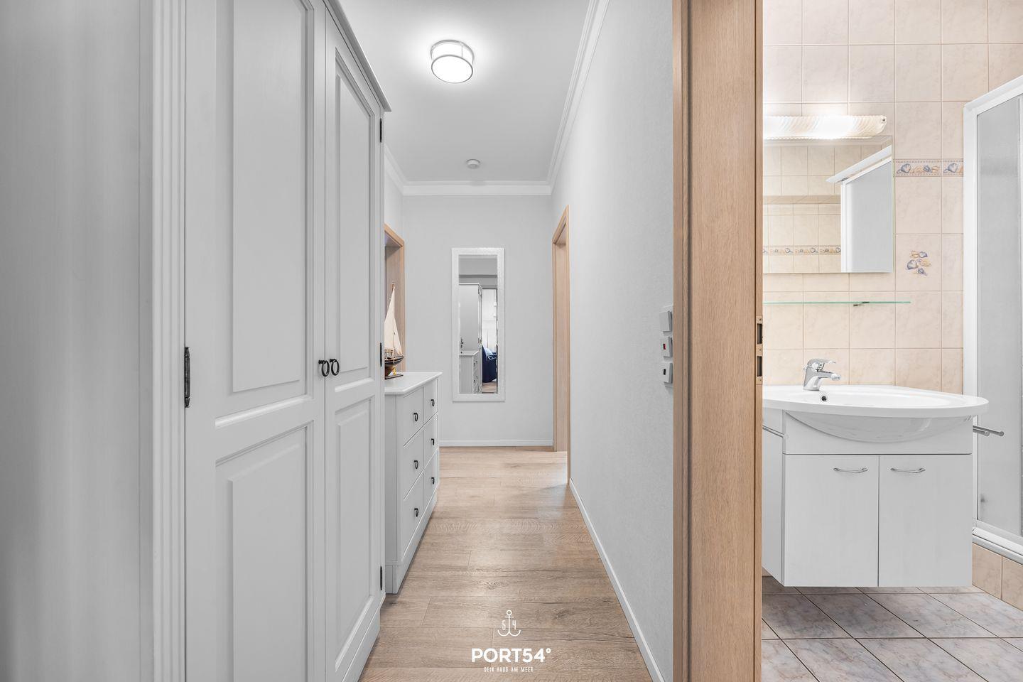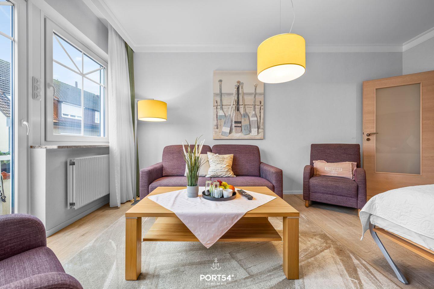 Die Wohnung überzeugt durch eine wohnliche Atmosphäre und eine durchdachte Raumaufteilung. Das separate Schlafzimmer ist mit zwei gemütlichen Einzelbetten ausgestattet und bietet erholsamen Schlaf. Im Wohnzimmer steht zusätzlich ein praktisches Schrankbett, das sich bei Bedarf zu einem komfortablen Doppelbett ausklappen lässt – ideal für Familien oder gemeinsam reisende Gäste. Ein einladender Wohnbereich sowie der Balkon laden zum Entspannen und Durchatmen ein, besonders nach einem Tag an der frischen Nordseeluft. Ein Privatparkplatz in der Nähe sorgt für zusätzlichen Komfort.