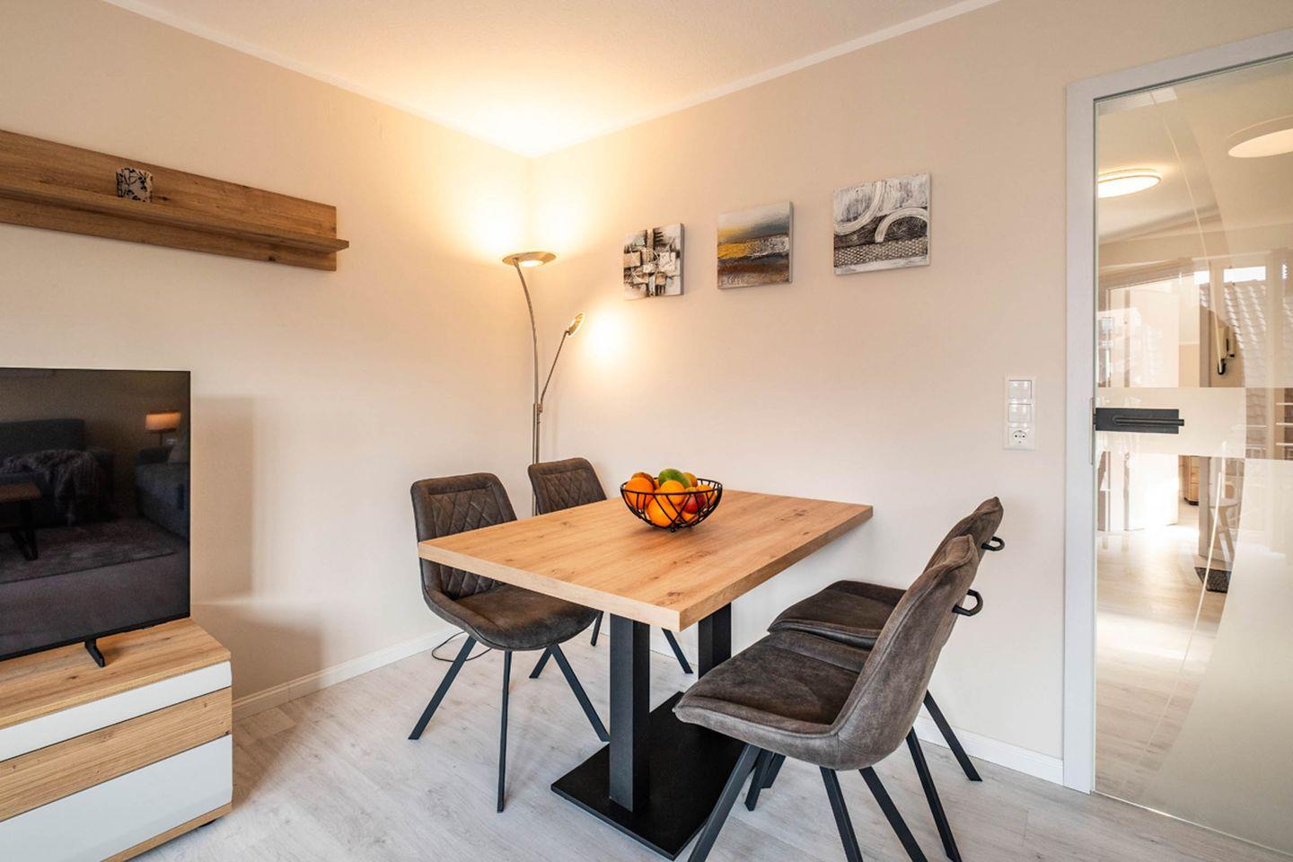 Das absolute Highlight dieser Wohnung ist der Logenplatz direkt am Fenster: Genießen Sie einen fantastischen Panoramablick auf die belebte Büsumer Fußgängerzone. Beobachten Sie das bunte Treiben bei einer Tasse Kaffee ganz entspannt aus der ersten Reihe. Da die Wohnung über keinen Balkon verfügt, holen wir Ihnen das pulsierende Leben durch die großen Fensterfronten direkt ins gemütliche Wohnzimmer.