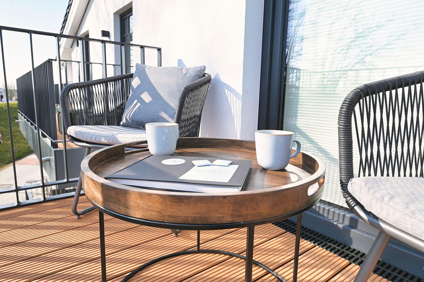 Verbringen Sie die sonnigen Stunden auf einen der beiden großzugig geschnittenen Balkonen. Begrüßen Sie die Sonne über den direkten Zugang vom Schlafzimmer auf den ersten Balkon. Der zweite bietet Ihnen direkten Hafenblick. Genießen Sie herrliche Stunden im Strandkorb direkt auf Ihrem Balkon.